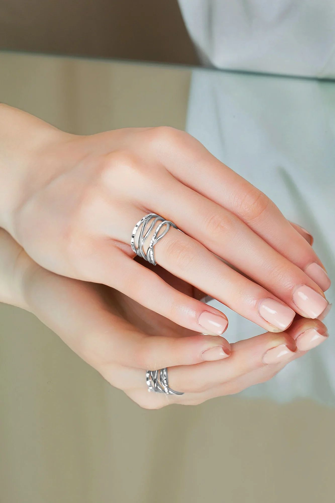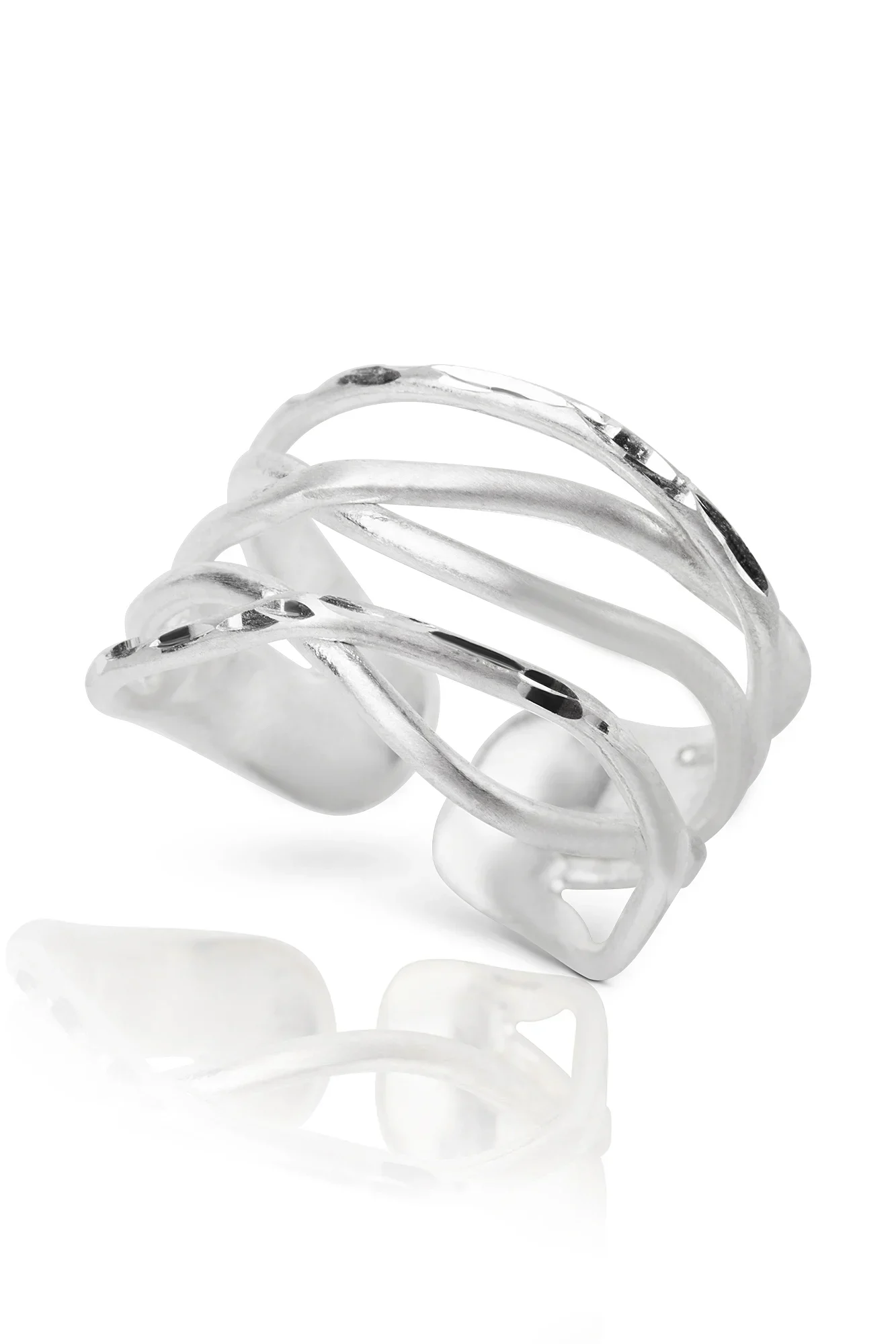 Κατασκευασμένο από ασήμι υψηλής ποιότητας, η ρυθμιζόμενη γάμπα του (adjustable band) εξασφαλίζει άνετη εφαρμογή σε κάθε δάχτυλο. Ελαφρύ και ευέλικτο, αυτό το δαχτυλίδι είναι ιδανικό για καθημερινή χρήση ή ως μια διακριτική πινελιά για ιδιαίτερες περιστάσεις. Ένα διαχρονικό κομμάτι που συνδυάζει τη μοντέρνα αισθητική με την καλλιτεχνική δεξιοτεχνία.