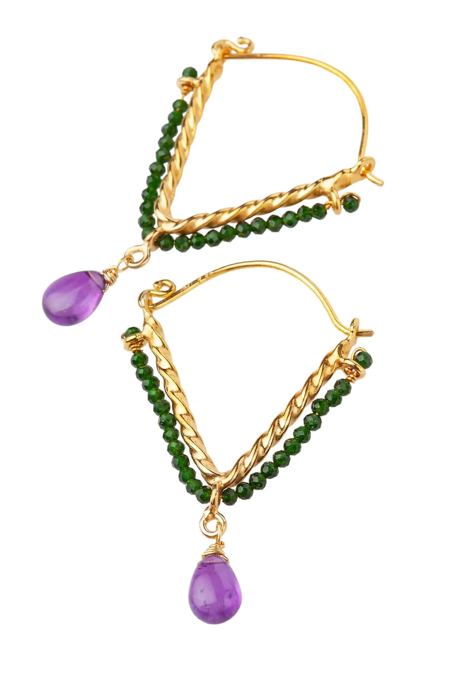 Τριγωνικοί επίχρυσοι ασημένιοι κρίκοι με αμέθυστο