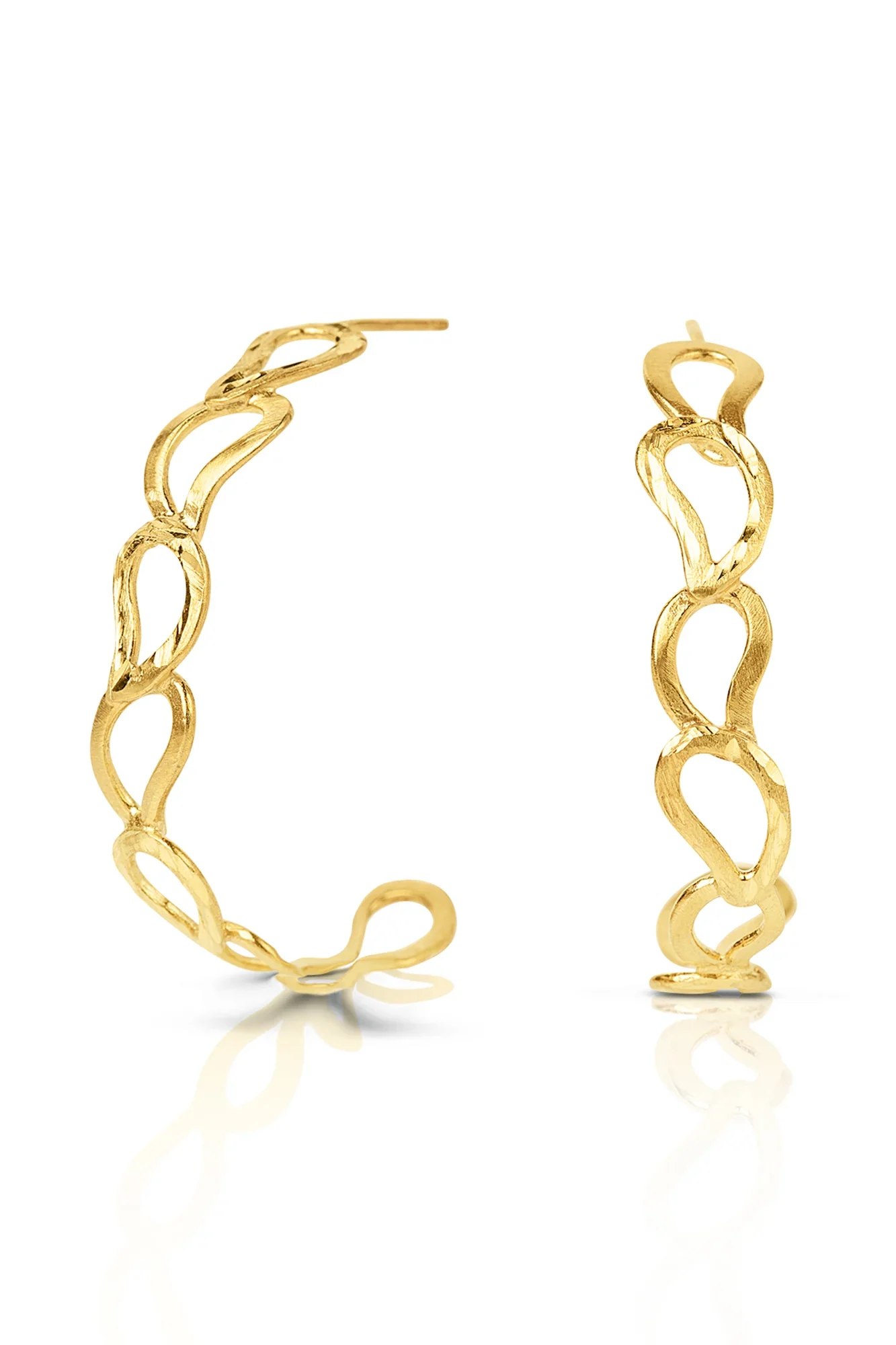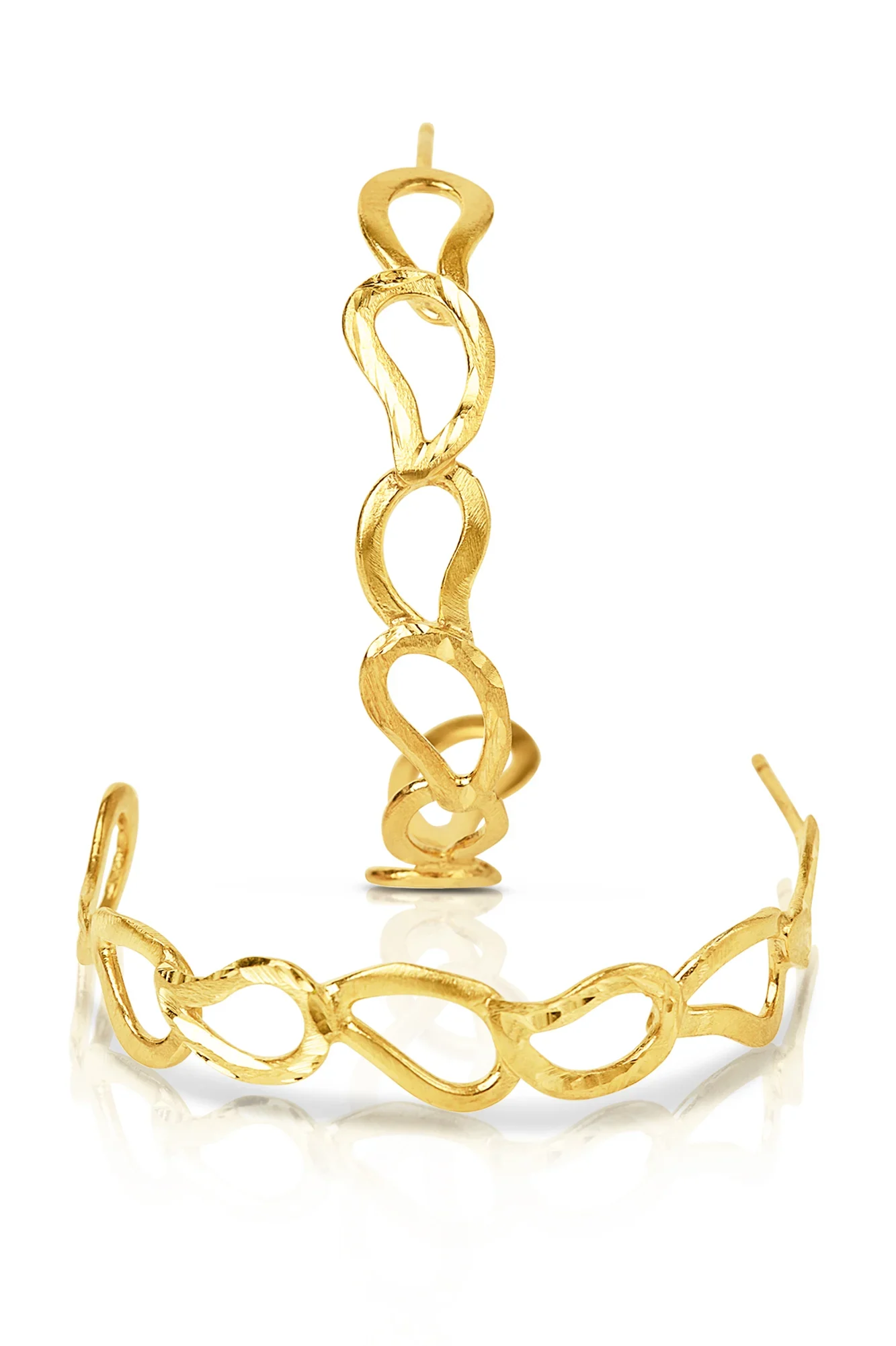 Αυτοί οι εξαιρετικοί ανάγλυφοι επίχρυσοι ασημένιοι κρίκοι διακρίνονται για τον σοφιστικέ σχεδιασμό τους, εμπνευσμένο από το διαχρονικό μοτίβο λαχούρι. Φιλοτεχνημένοι στο χέρι με σχολαστική προσοχή στη λεπτομέρεια, οι ρευστές τους φόρμες και το λαμπερό τους φινίρισμα αναδύουν μια αίσθηση κλασικής κομψότητας. Ιδανικοί για να προσθέσουν μια πολυτελή νότα σε κάθε σύνολο, αυτοί οι κρίκοι είναι ελαφριοί, ευέλικτοι και αποτελούν την τέλεια επιλογή τόσο για ιδιαίτερες περιστάσεις όσο και για τις καθημερινές σας εμφανίσεις.