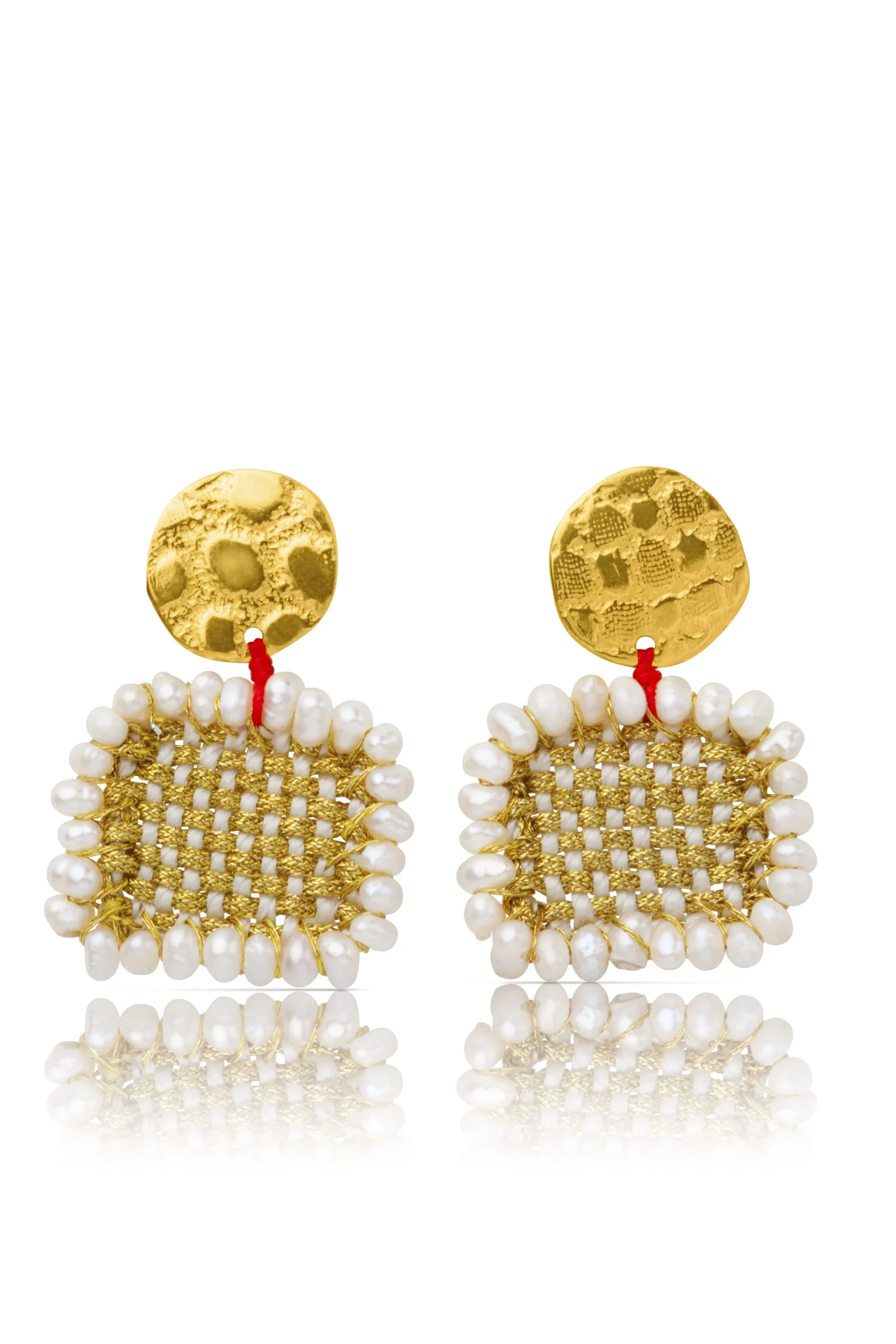 Ασημένια επίχρυσα και υφαντά σκουλαρίκια με μαργαριτάρια