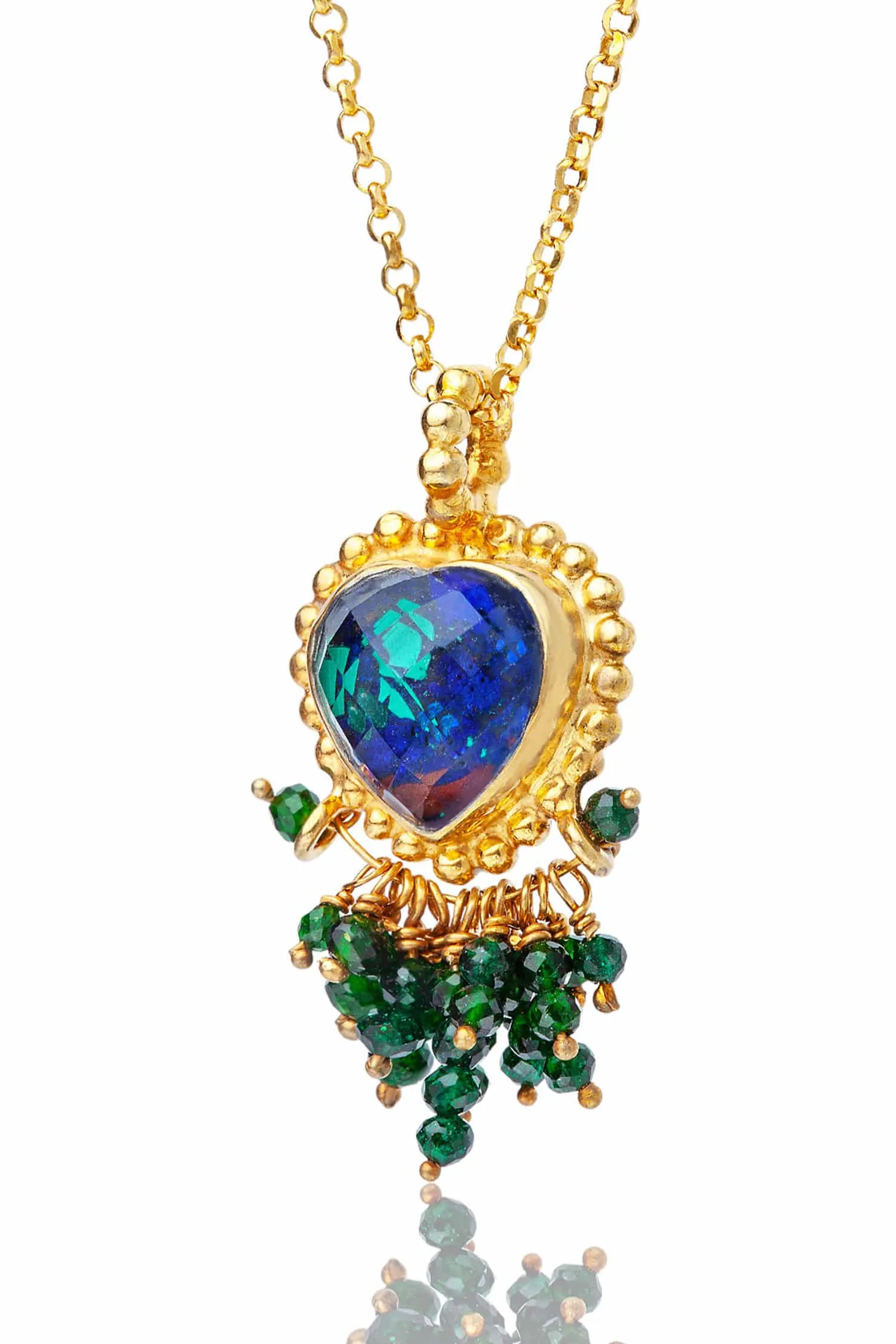 Ασημένια επιχρυσωμένη καρδιά με αζουρίτη και μαλαχίτη
