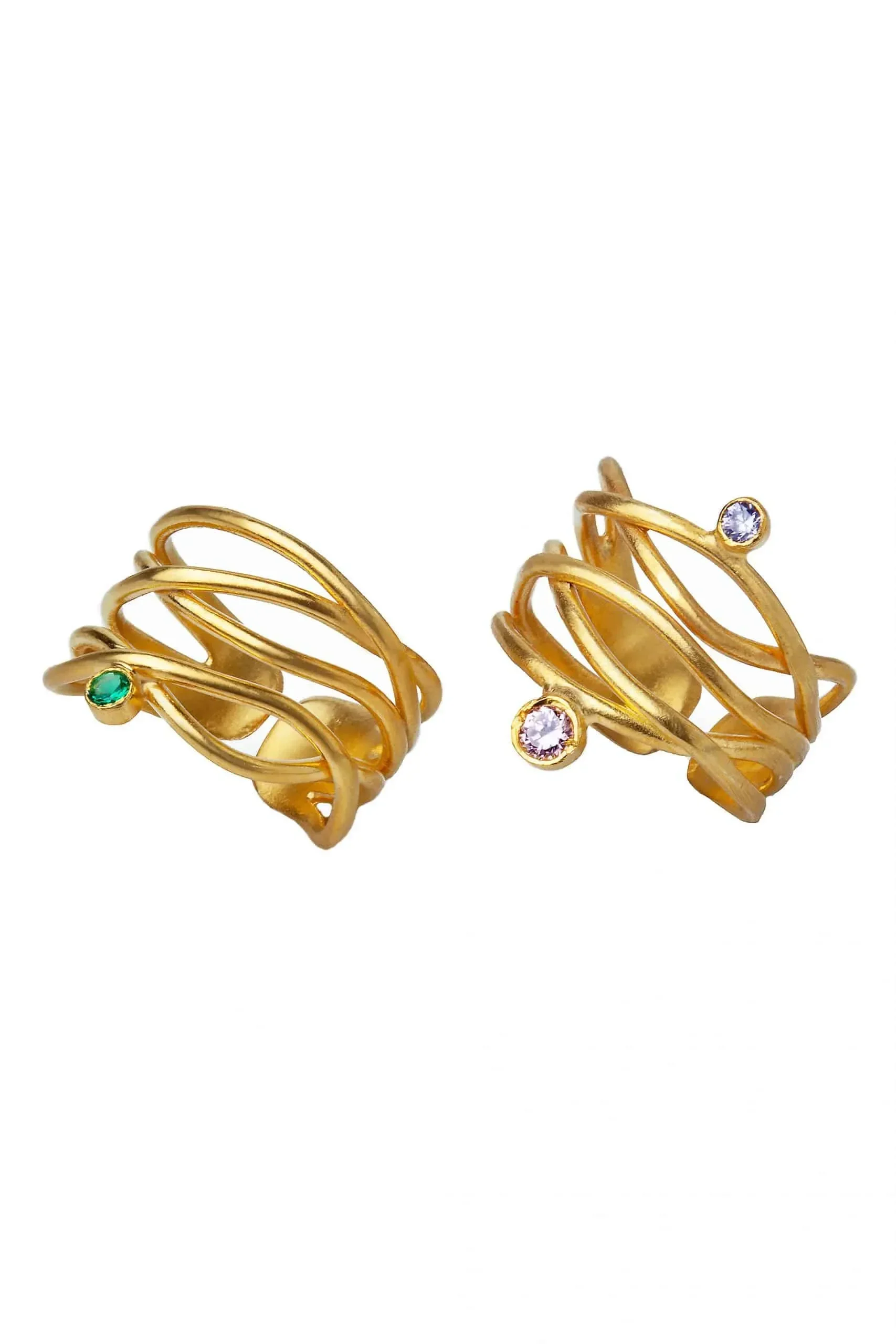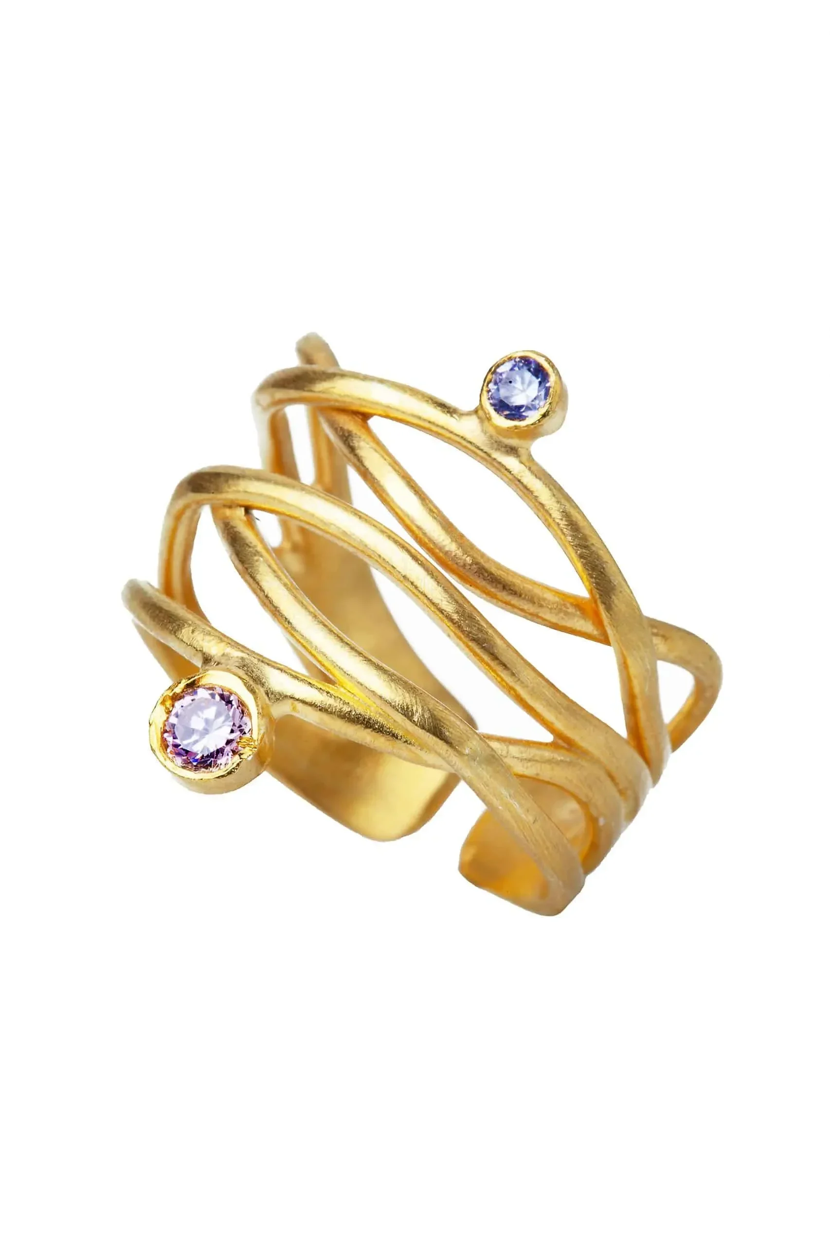 Ασημένιο επίχρυσο δαχτυλίδι Κύματα με ροζ και λιλά ζιργκόν. Το μέγεθος προσαρμόζεται