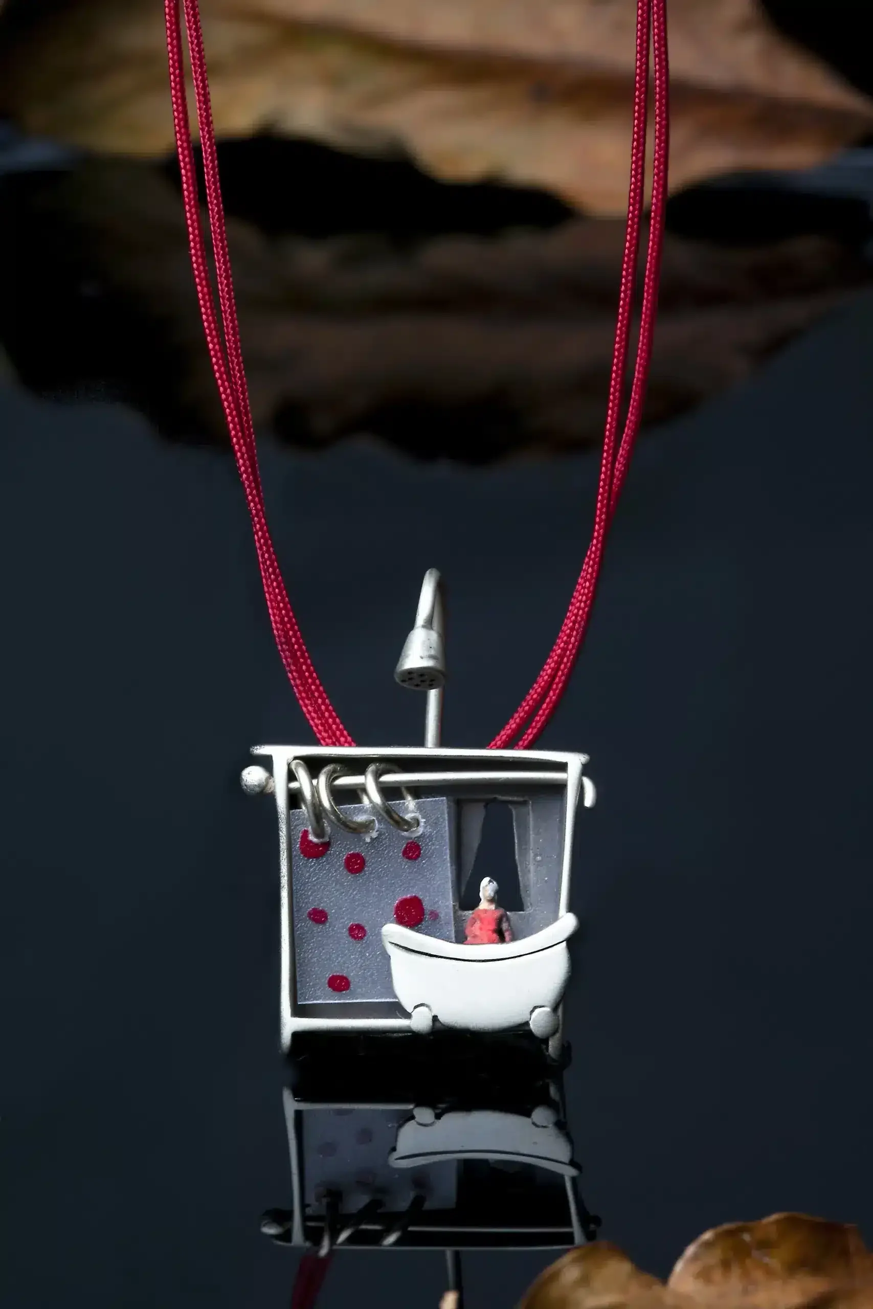 Ασημένιο οξειδωμένο μακρύ κολιέ με μινιατούρα φιγούρα