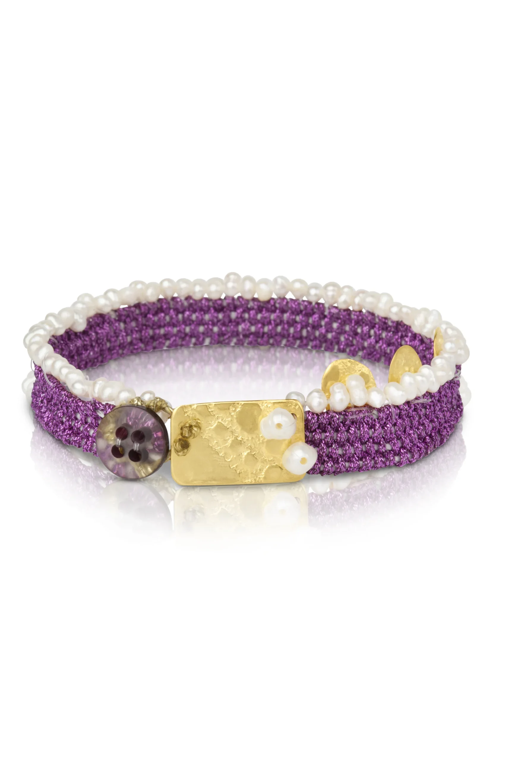 “Σας παρουσιάζουμε το εντυπωσιακό Χειροποίητο Βραχιόλι από Επιχρυσωμένο Ασημί με φούξια υφαντό στοιχείο, διακοσμημένο με μαργαριτάρια. Κατασκευασμένο με περίτεχνη προσοχή στη λεπτομέρεια, αυτό το βραχιόλι διαθέτει ένα όμορφο υφαντό σχέδιο και η επιχρύσωση προσθέτει μια πινελιά κομψότητας. Το ζωντανό φούξια χρώμα προσθέτει έναν τόνο χρώματος σε κάθε εμφάνιση, ενώ τα διακριτικά μαργαριτάρια προσδίδουν μια νότα κομψότητας. Ιδανικό για κάθε περίσταση, αυτό το βραχιόλι είναι απαραίτητο για κάθε λάτρη των κοσμημάτων. Κατασκευασμένο από υψηλής ποιότητας ασήμι και χρυσή επίστρωση, είναι ανθεκτικό και μακράς διάρκειας. Αναβαθμίστε το στυλ σας με αυτό το μοναδικό κομμάτι που σίγουρα θα τραβήξει τα βλέμματα. Παραγγείλτε τώρα και προσθέστε μια πινελιά πολυτέλειας στη συλλογή των κοσμημάτων σας.”