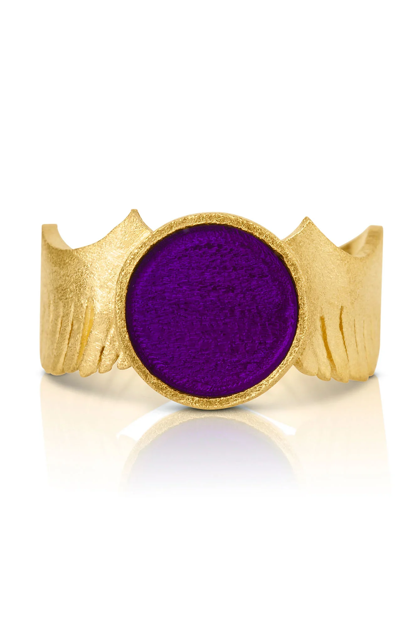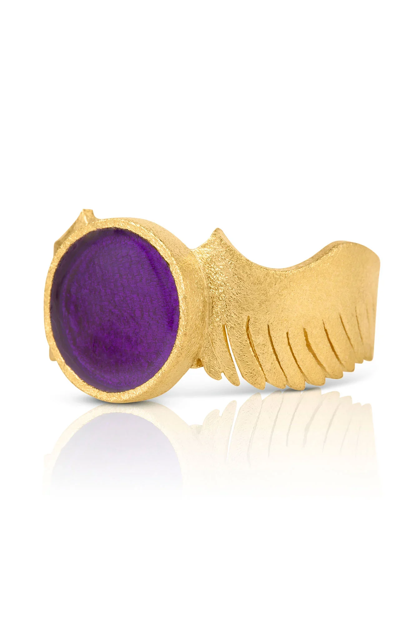 Δαχτυλίδι φτερά και επιχρύσωση διακοσμημένο με μωβ σμάλτο