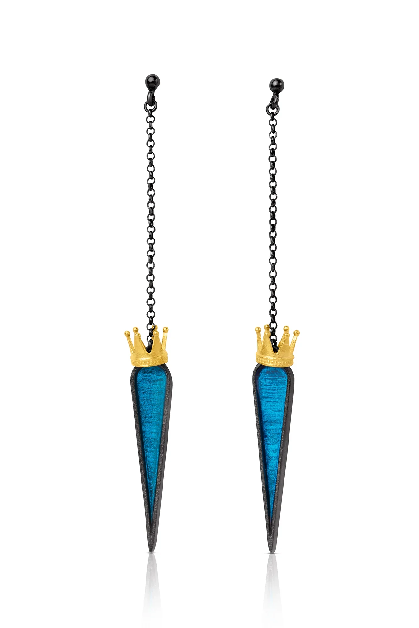 Παρουσιάζουμε το εκθαμβωτικό ζευγάρι εξαιρετικών χειροποίητων σκουλαρικιών, φτιαγμένα από ασήμι με επικάλυψη μαύρου ροδίου και διακοσμημένα με περίτεχνα επιχρυσωμένα στοιχεία και κομψό μπλε σμάλτο. Αυτά τα σκουλαρίκια είναι αληθινά αριστουργήματα, συνδυάζοντας πολυτελή υλικά με εξαιρετική τεχνική. Η επικάλυψη μαύρου ροδίου προσδίδει μια τολμηρή αισθητική, ενώ οι επιχρυσωμένες λεπτομέρειες προσθέτουν μια πινελιά λάμψης. Το μπλε σμάλτο προσφέρει έναν ζωηρό χρωματικό τόνο, καθιστώντας τα ιδανικά για κάθε περίσταση. Ελαφριά και άνετα, σίγουρα θα τραβήξουν τα βλέμματα όπου και αν πάτε. Αναβαθμίστε το στυλ σας με αυτά τα μοναδικά και κομψά σκουλαρίκια.