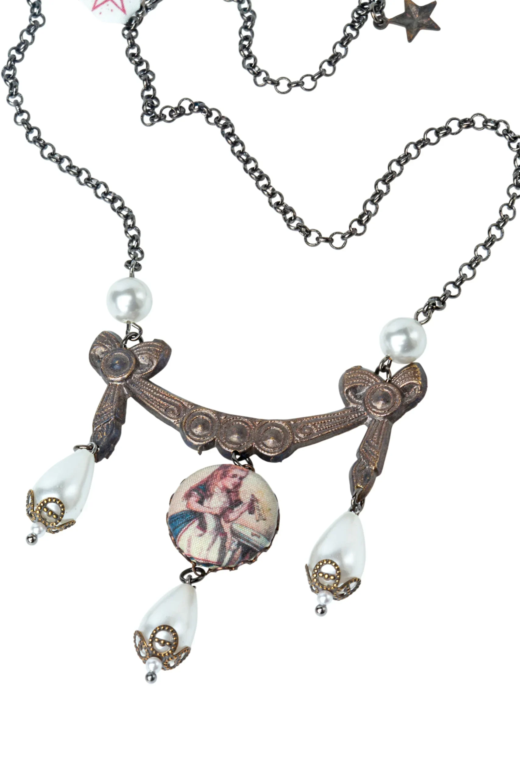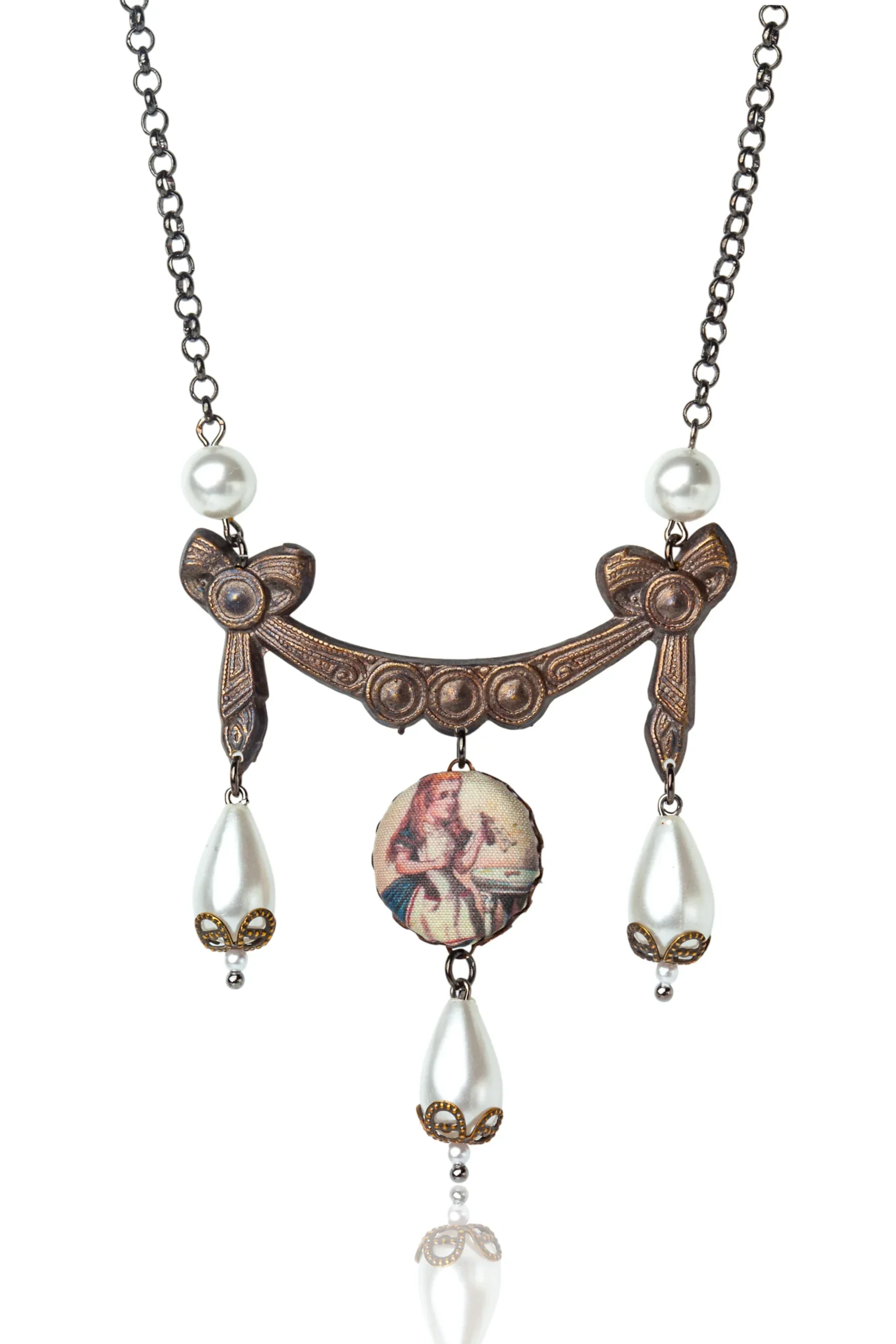 Παρουσιάζουμε το Βικτοριανό Κολιέ Μαργαριταριών “Wonderland Swag”: Αυτό το κομψό κόσμημα παραπέμπει στο εκλεπτυσμένο, αλλά γεμάτο περιέργεια, στυλ του κόσμου της Αλίκης, συνδυάζοντας την αντίκα γοητεία με τα κλασικά μαργαριτάρια.