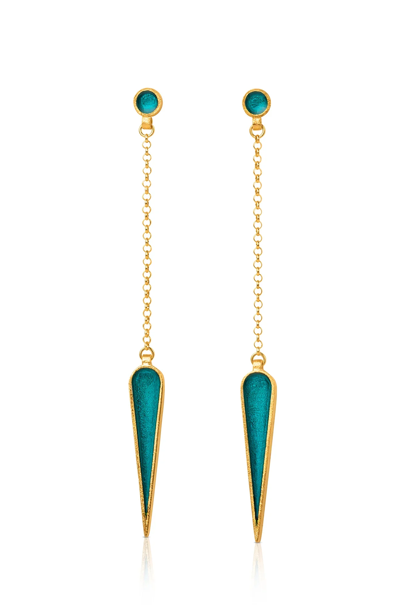 Παρουσιάζουμε τα κομψά και μινιμαλιστικά χειροποίητα μακριά ασημένια σκουλαρίκια με επιχρύσωση και τουρκουάζ σμάλτο. Αυτά τα εκθαμβωτικά σκουλαρίκια είναι κατασκευασμένα με προσοχή στη λεπτομέρεια, διαθέτοντας έναν κομψό και σύγχρονο σχεδιασμό που θα αναβαθμίσει κάθε εμφάνιση. Η επιχρύσωση προσθέτει μια πινελιά πολυτέλειας, ενώ το τουρκουάζ σμάλτο προσφέρει μια ζωντανή πινελιά χρώματος και προσωπικότητας.
