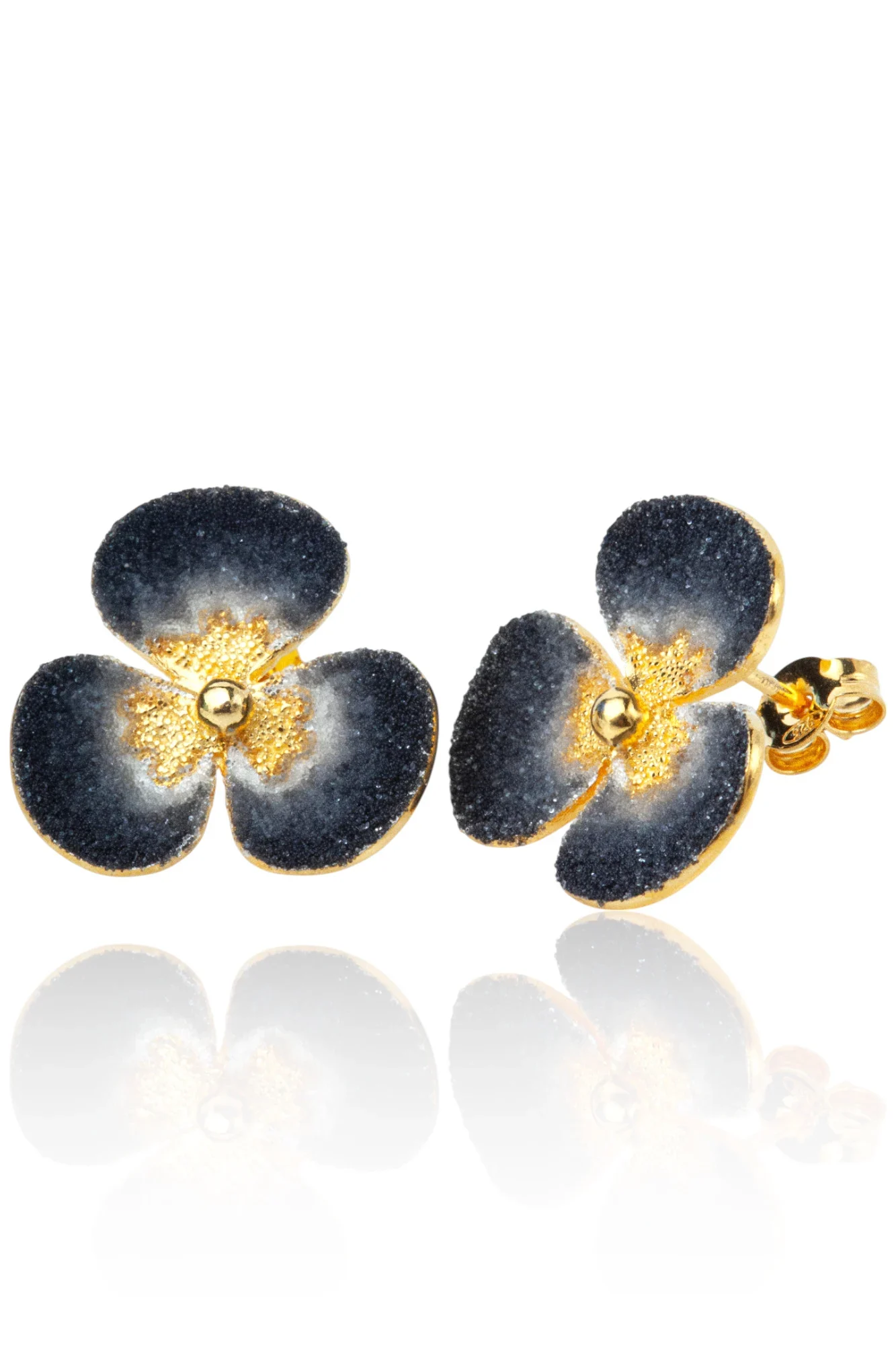 Σας παρουσιάζουμε τα εντυπωσιακά χειροποίητα επιχρυσωμένα ασημένια σκουλαρίκια “Πανσές” με λευκούς και μαύρους νανοκρυστάλλους!