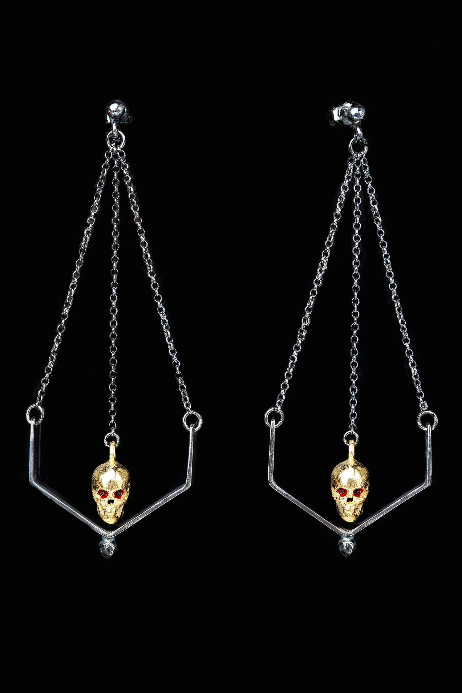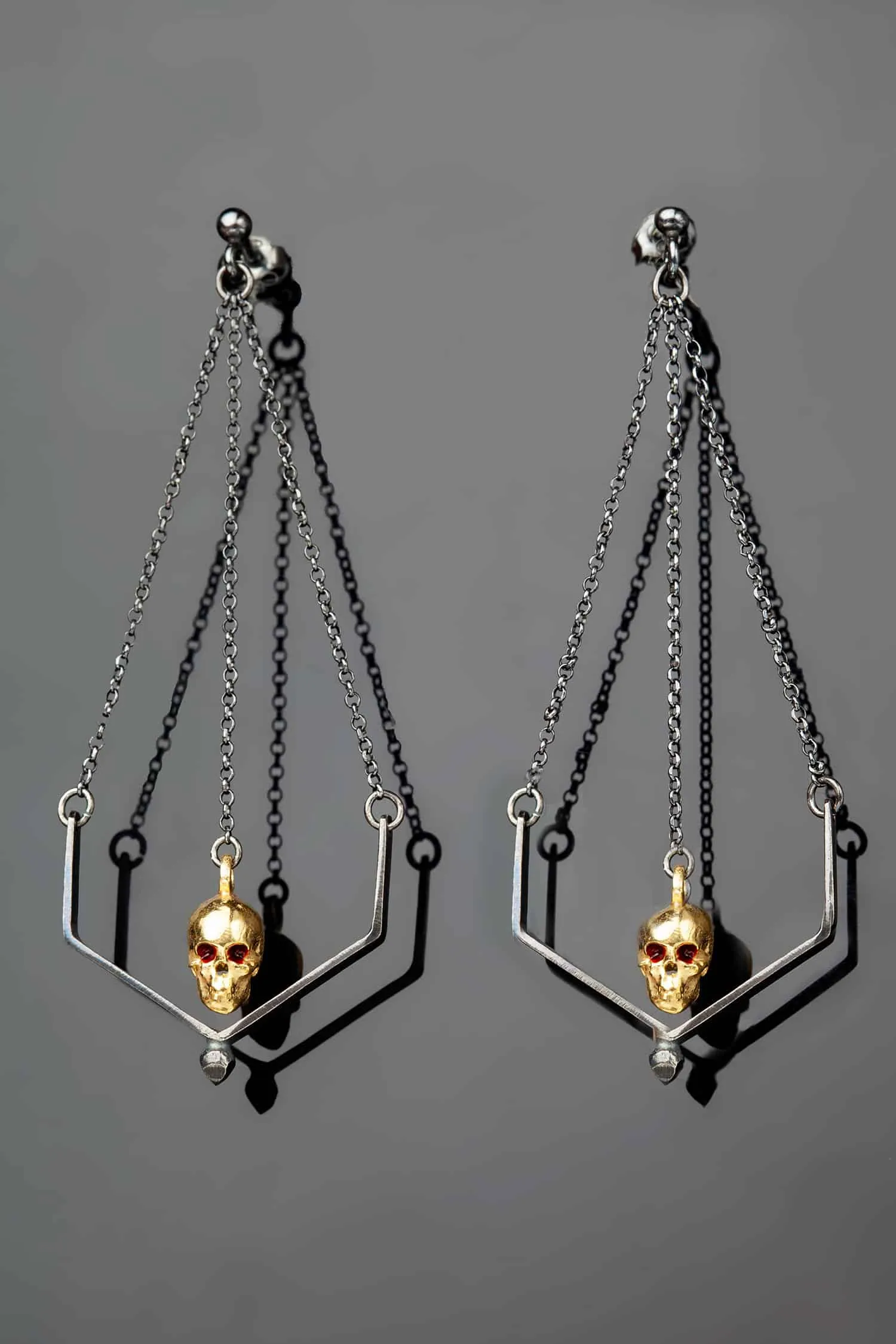 Μοναδικά σκουλαρίκια νεκροκεφαλές με επιχρύσωση και μαύρη επιπλατίνωση