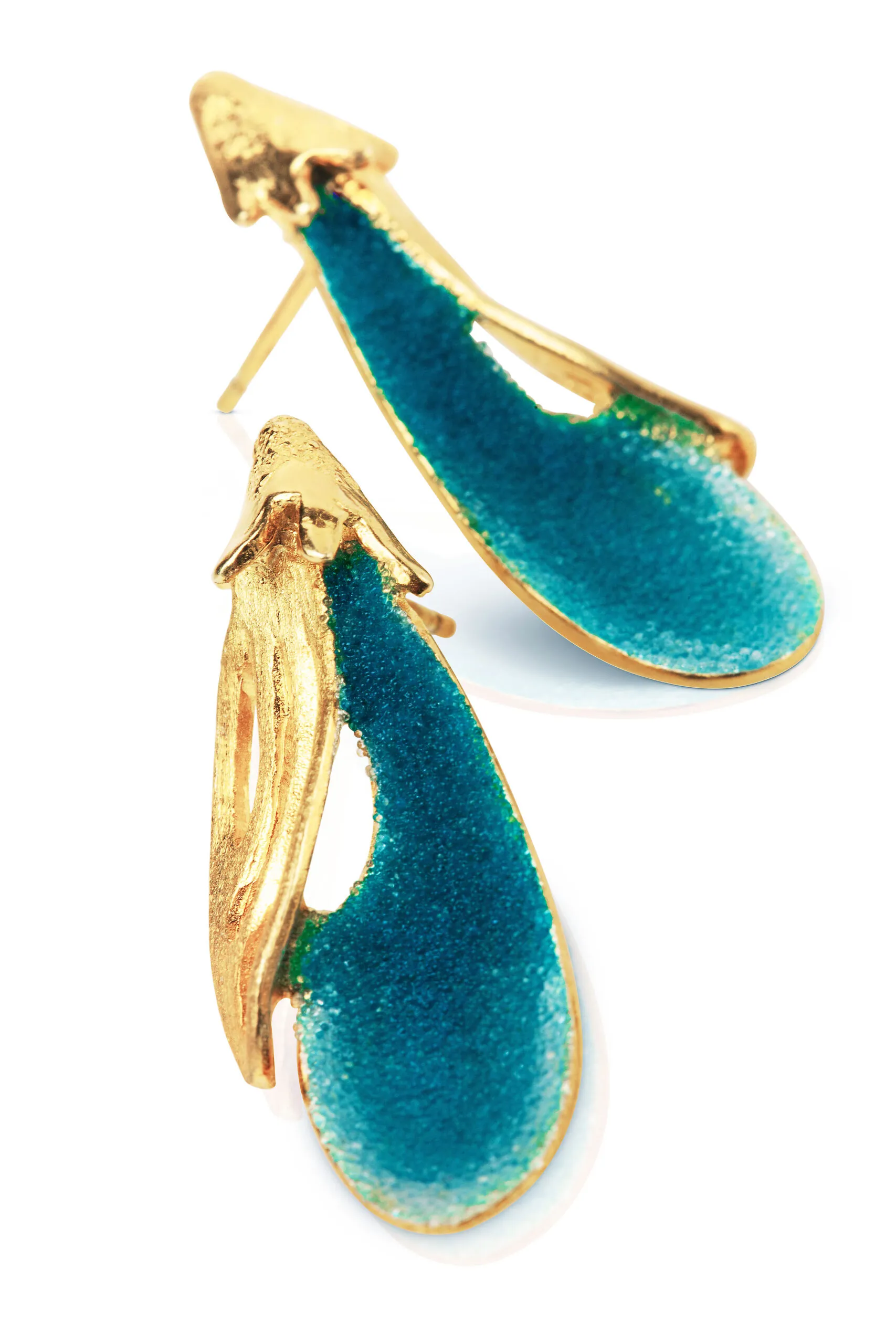 Μπλε λουλούδια χειροποίητα ασημένια επίχρυσα σκουλαρίκια