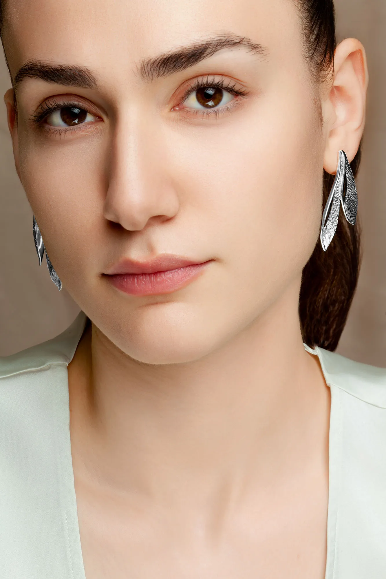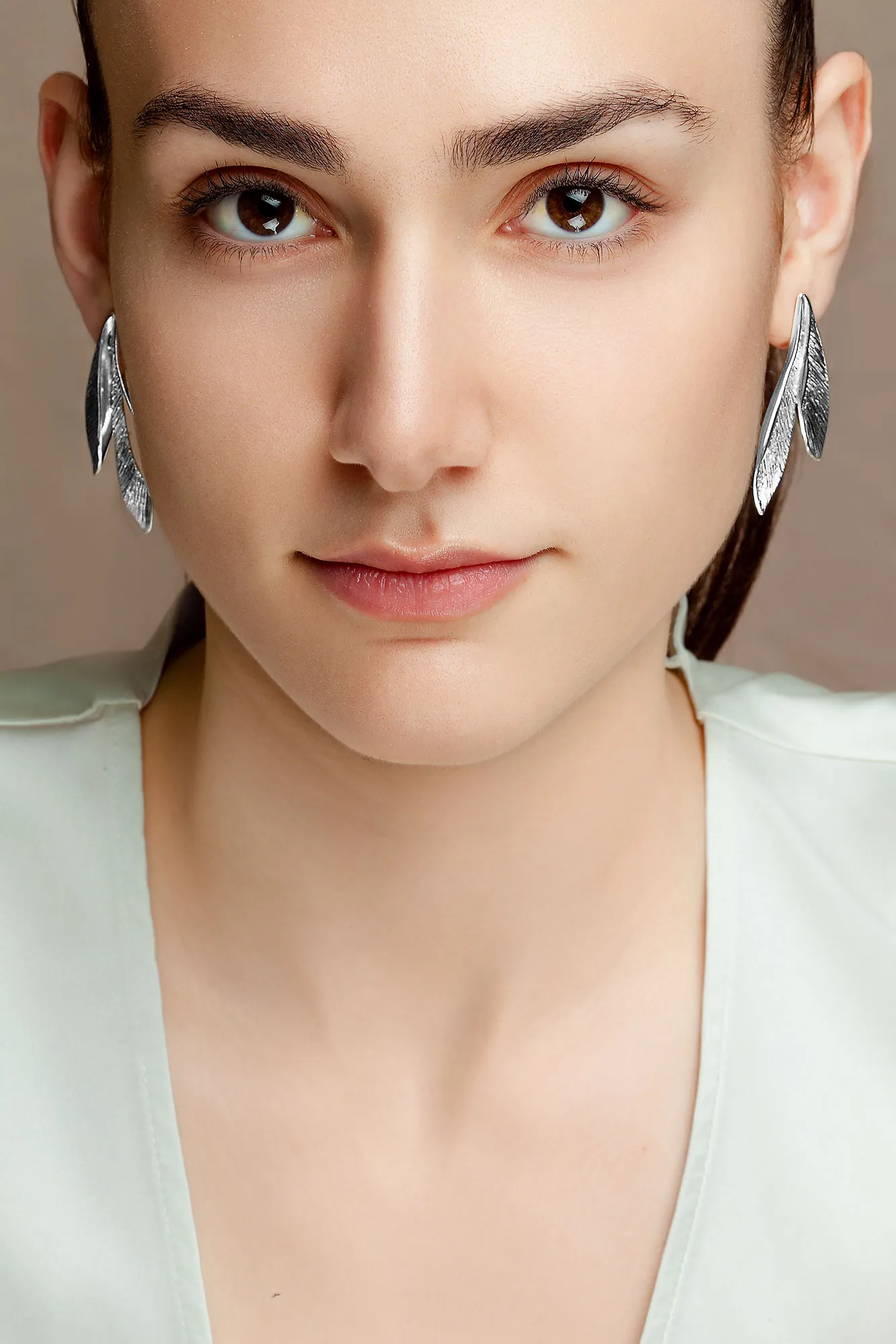 Φύλλα μίνιμαλ χειροποίητα ασημένια σκουλαρίκια