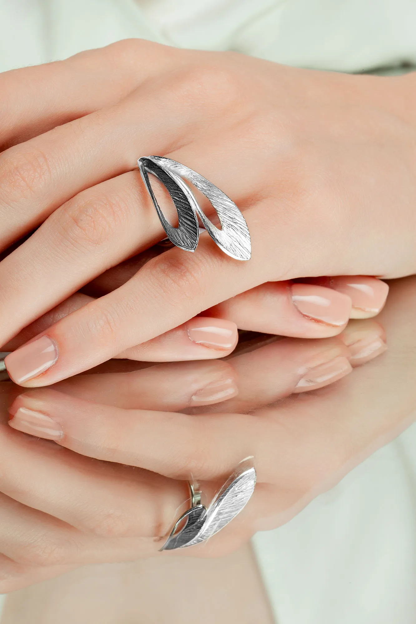 Φύλλα χειροποίητο ασημένιο δαχτυλίδι