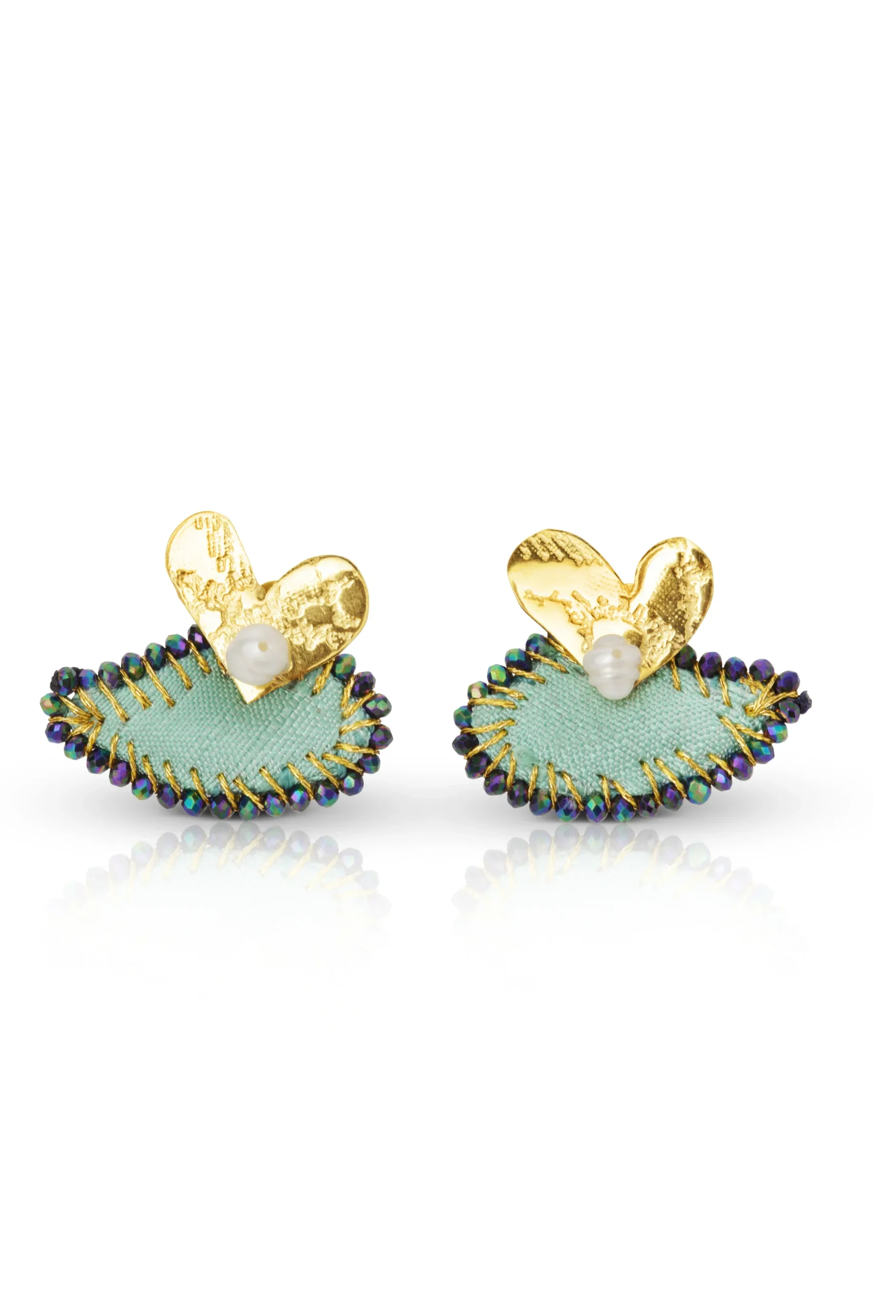 Παρουσιάζουμε τα εκπληκτικά μας Σκουλαρίκια Καρδιές από Ασήμι, επικαλυμμένα με χρυσό και στολισμένα με πολυτελές πράσινο μεταξωτό ύφασμα. Αυτά τα σκουλαρίκια είναι ιδανικά για να προσθέσετε μια πινελιά κομψότητας και φινέτσας σε κάθε εμφάνιση. Ο σχεδιασμός της καρδιάς με χρυσή επικάλυψη συνδυάζεται όμορφα με την υφή του ασημιού, δημιουργώντας μια μοναδική και εντυπωσιακή εμφάνιση. Η προσθήκη του ζωντανού πράσινου μεταξωτού υφάσματος προσθέτει μια δόση χρώματος και απαλότητας σε αυτά τα εντυπωσιακά σκουλαρίκια. Ελαφριά και άνετα, είναι ιδανικά για κάθε περίσταση, από μια καθημερινή έξοδο μέχρι μια ιδιαίτερη εκδήλωση. Ανεβάστε το στυλ σας με αυτά τα ευέλικτα και όμορφα Σκουλαρίκια Καρδιές από Ασήμι με Υφή, επικαλυμμένα με χρυσό 24Κ και μεταξωτό ύφασμα σε πράσινο χρώμα.