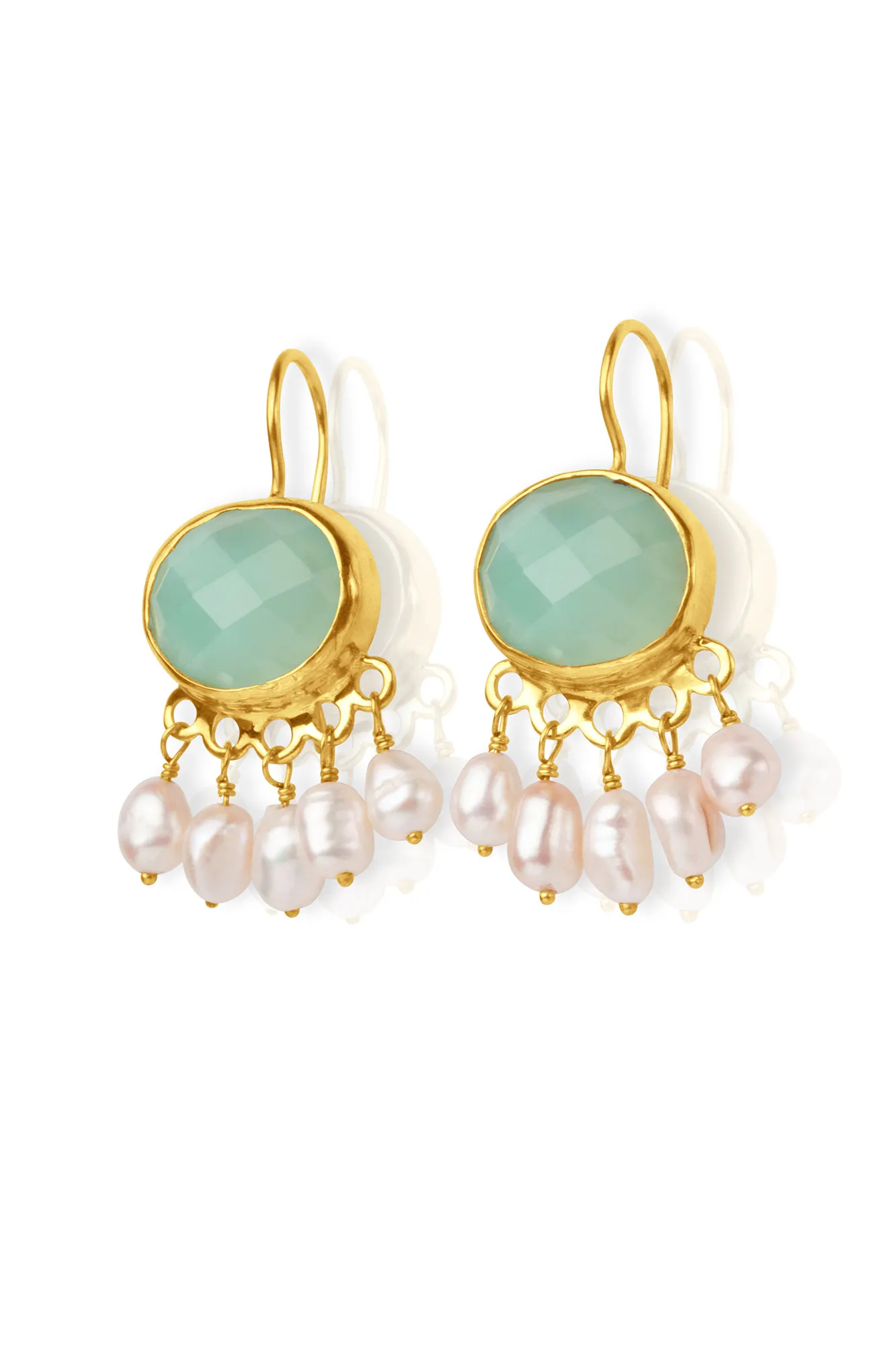 Χειροποίητα ασημένια σκουλαρίκια με χρυσοπράσιο και μαργαριτάρια