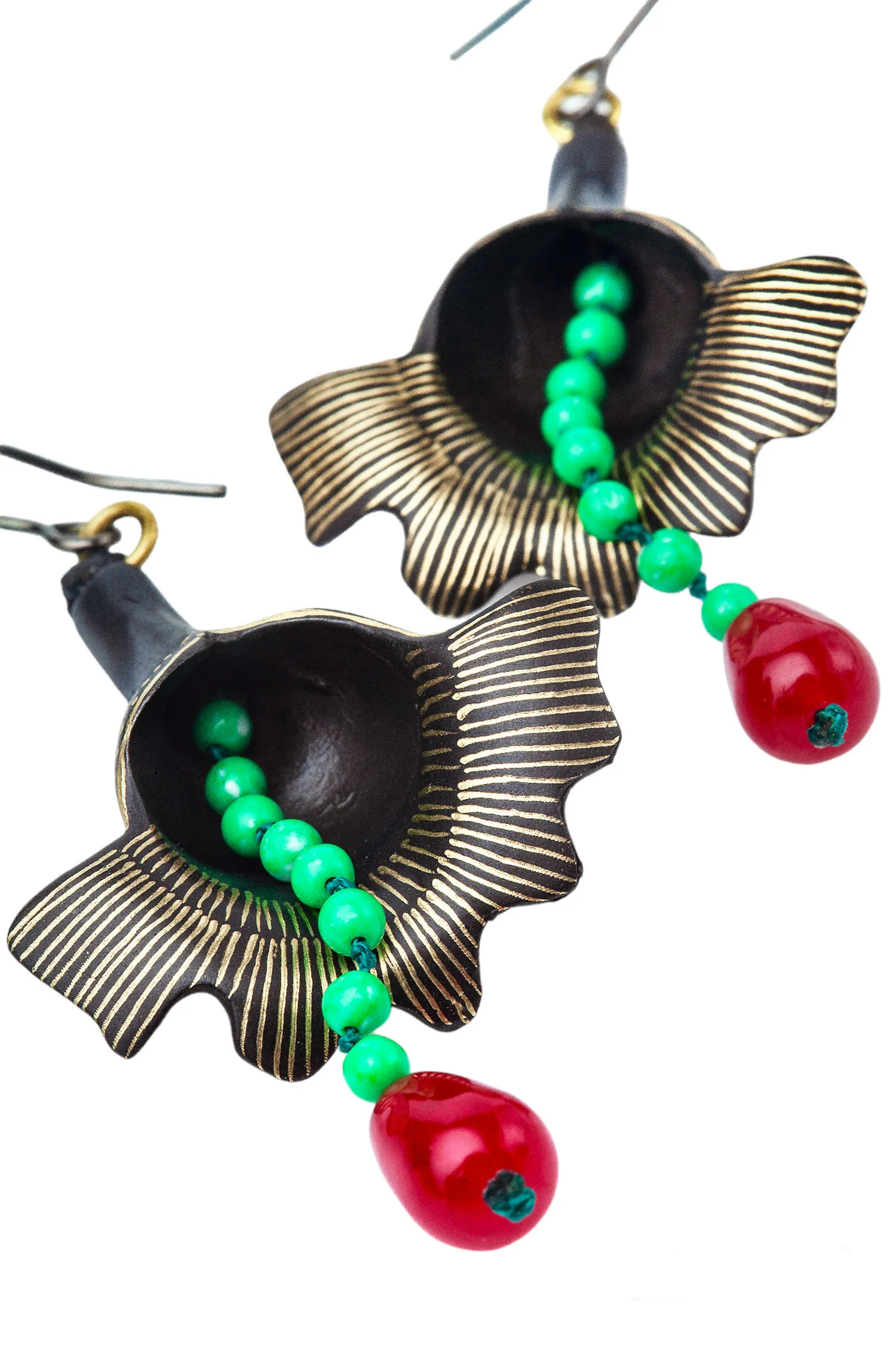 Τα εντυπωσιακά χειροποίητα σκουλαρίκια με χαραγμένα λουλούδια είναι διακοσμημένα με ζωηρό πράσινο χαλαζία και βαθύ κόκκινο νεφρίτη. Κάθε σκουλαρίκι κατασκευάζεται με απόλυτη φροντίδα από έμπειρους τεχνίτες, καθιστώντας το κάθε κομμάτι μοναδικό. Η περίτεχνη χάραξη των λουλουδιών προσδίδει μια πινελιά κομψότητας, ενώ οι φυσικοί πολύτιμοι λίθοι δίνουν ζωντάνια σε κάθε εμφάνιση. Αυτά τα σκουλαρίκια δεν αποτελούν μόνο ένα όμορφο αξεσουάρ, αλλά και ένα σύμβολο της ομορφιάς της φύσης και της χειροποίητης τέχνης. Αναβαθμίστε το στυλ σας με αυτά τα μοναδικά και ηθικά κατασκευασμένα σκουλαρίκια. Ιδανικά για κάθε περίσταση, είναι απαραίτητα για κάθε συλλογή κοσμημάτων. Παραγγείλτε τώρα και προσθέστε μια νότα φύσης και κομψότητας στο στυλ σας.