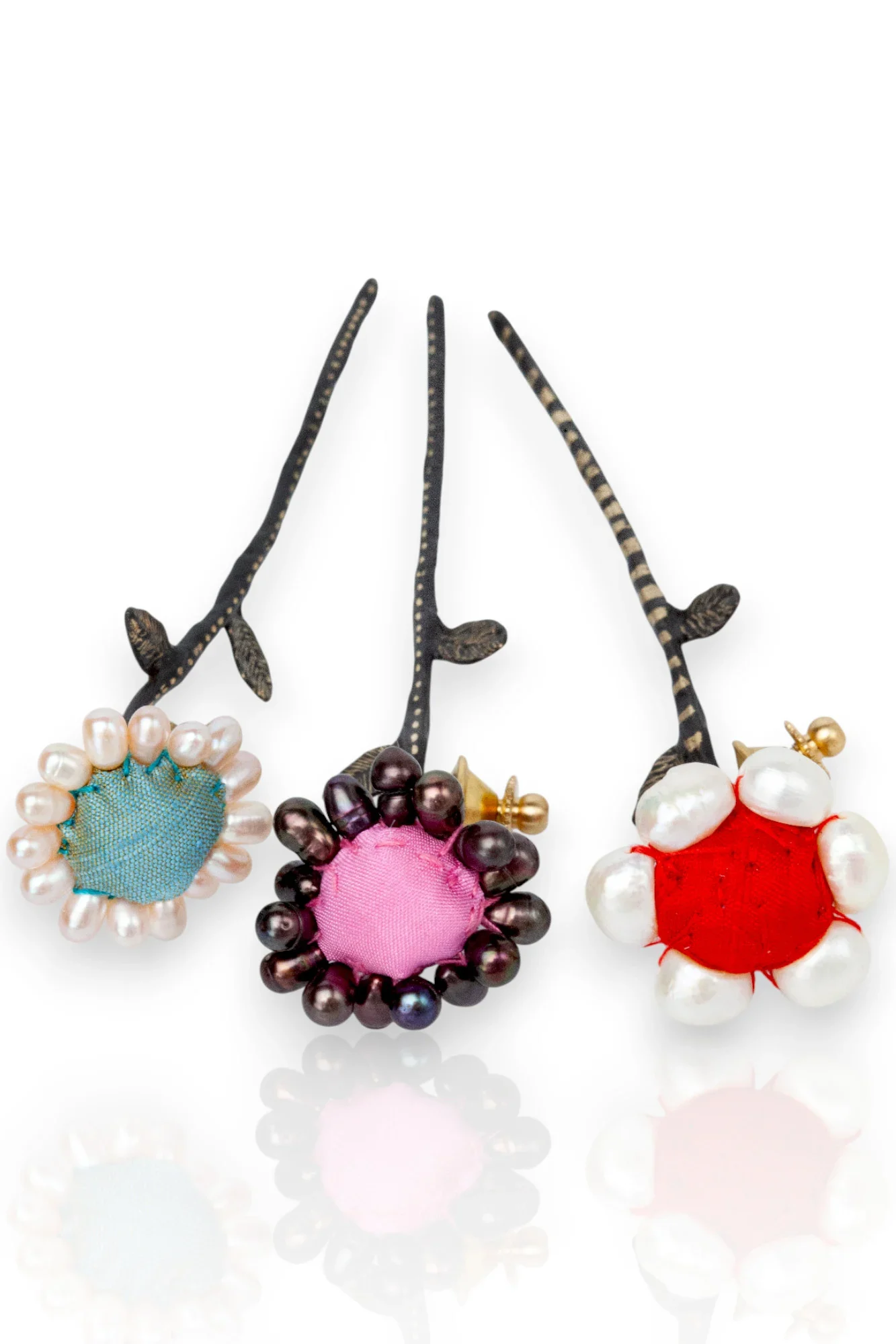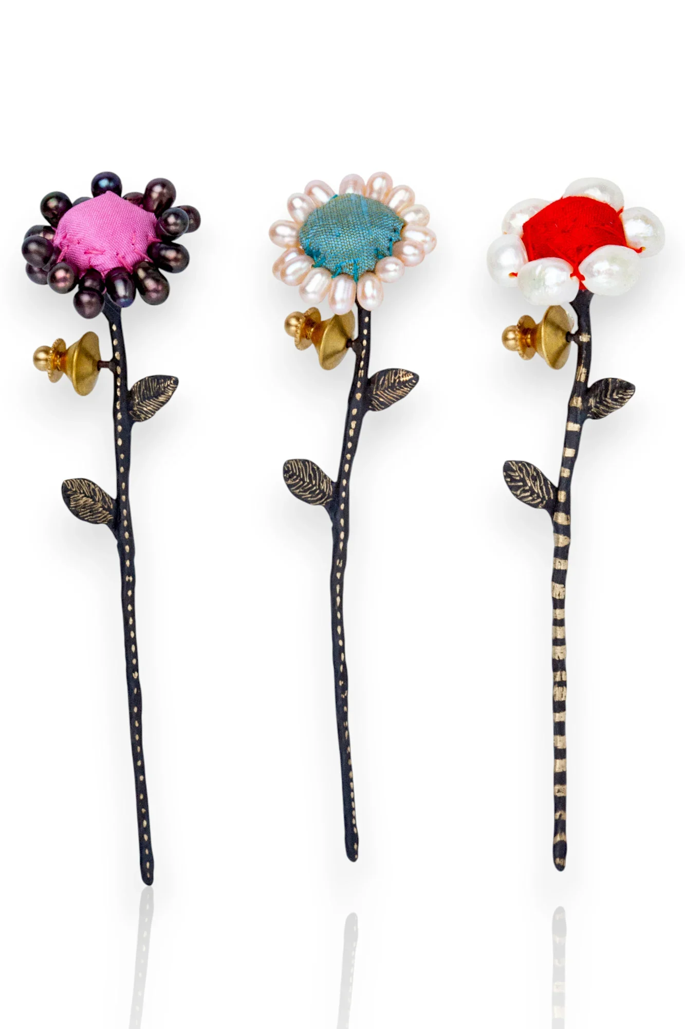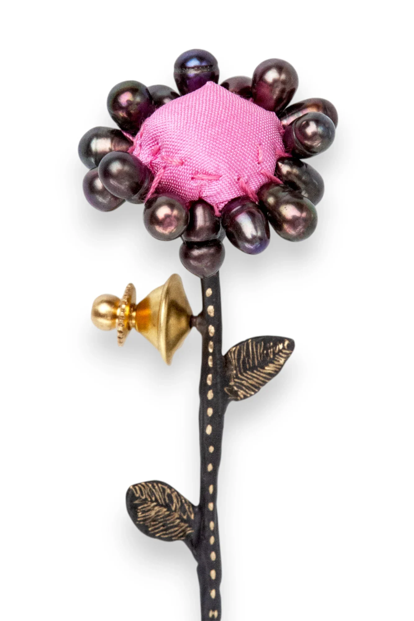 Χειροποίητη χαραγμένη καρφίτσα λουλούδι με μαργαριτάρια
