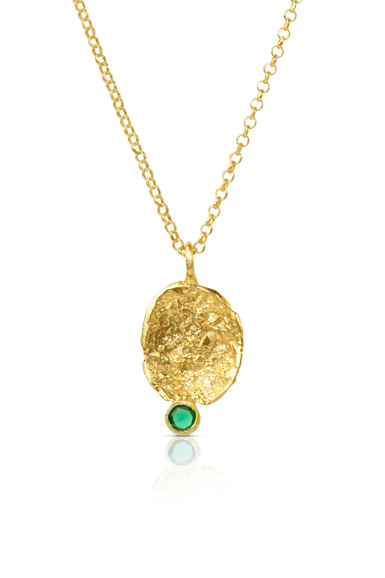 Χειροποίητο Οβάλ Επίχρυσο Ασημένιο Κολιέ με Πράσινο Ζιργκόν