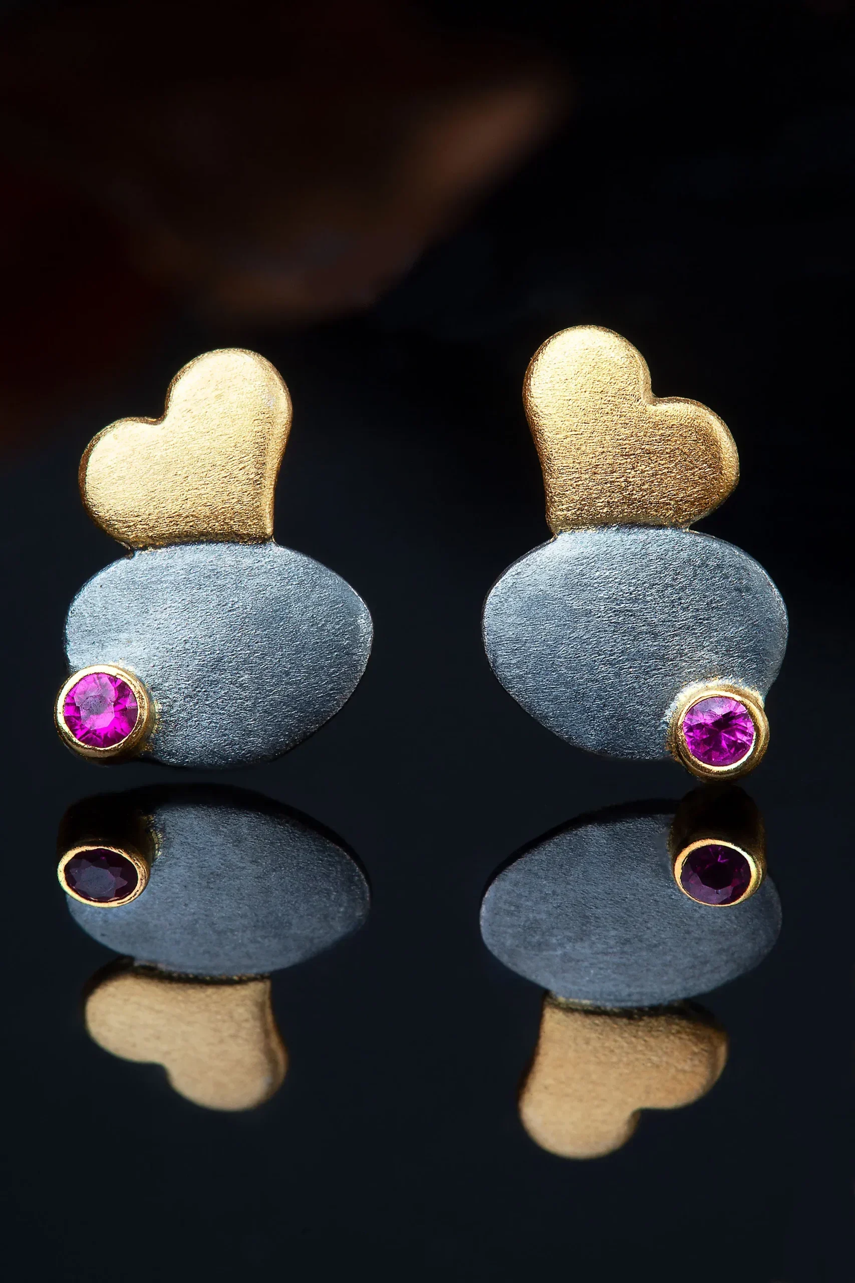 Ασημένια σκουλαρίκια με μαύρη επιπλατίνωση, επίχρυσες λεπτομέρειες και ζιργκόν