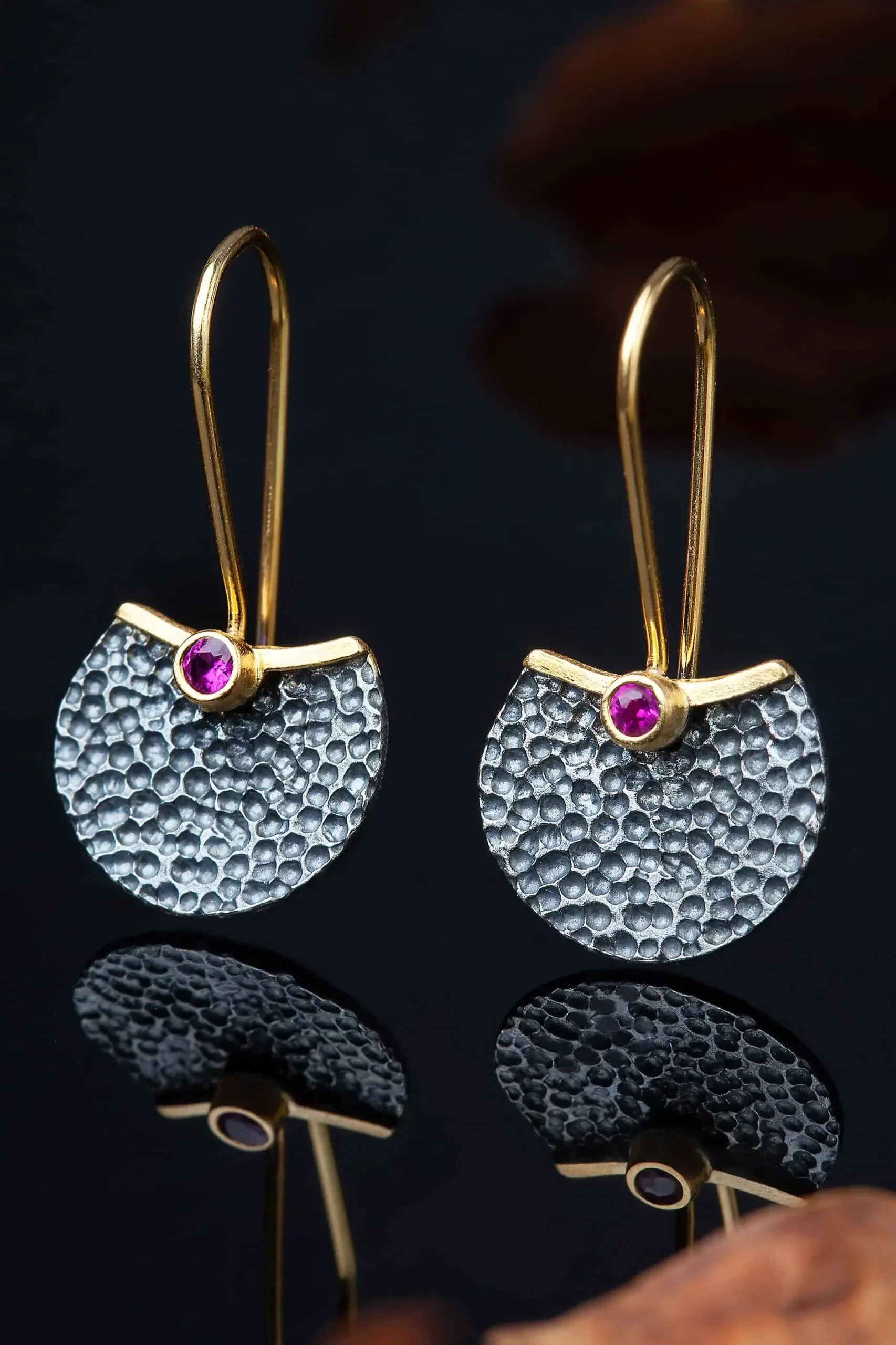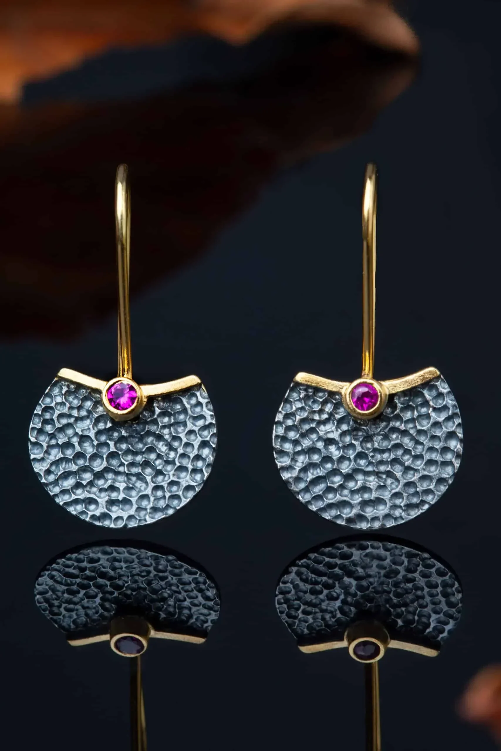 Ασημένια σκουλαρίκια με μαύρη επιπλατίνωση, επίχρυσες λεπτομέρειες και ζιργκόν