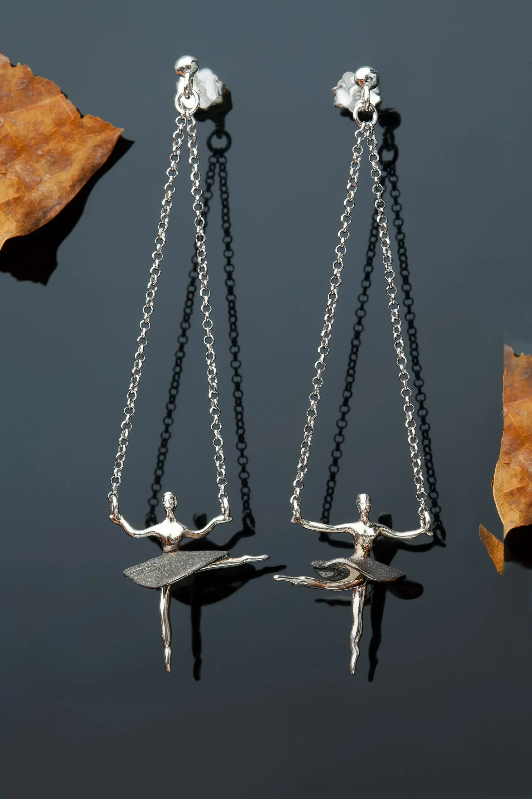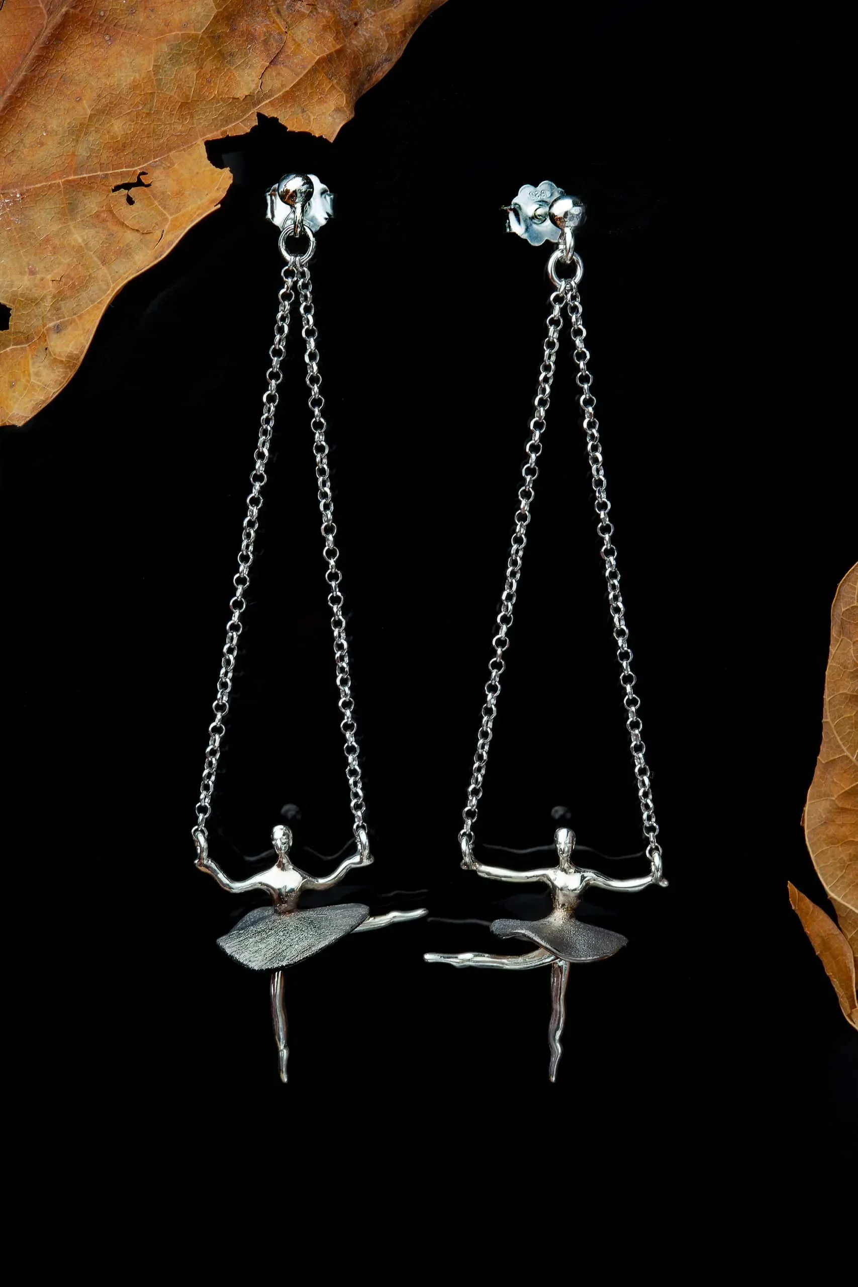 Ασημένια σκουλαρίκια μπαλαρίνες με επιπλατίνωση