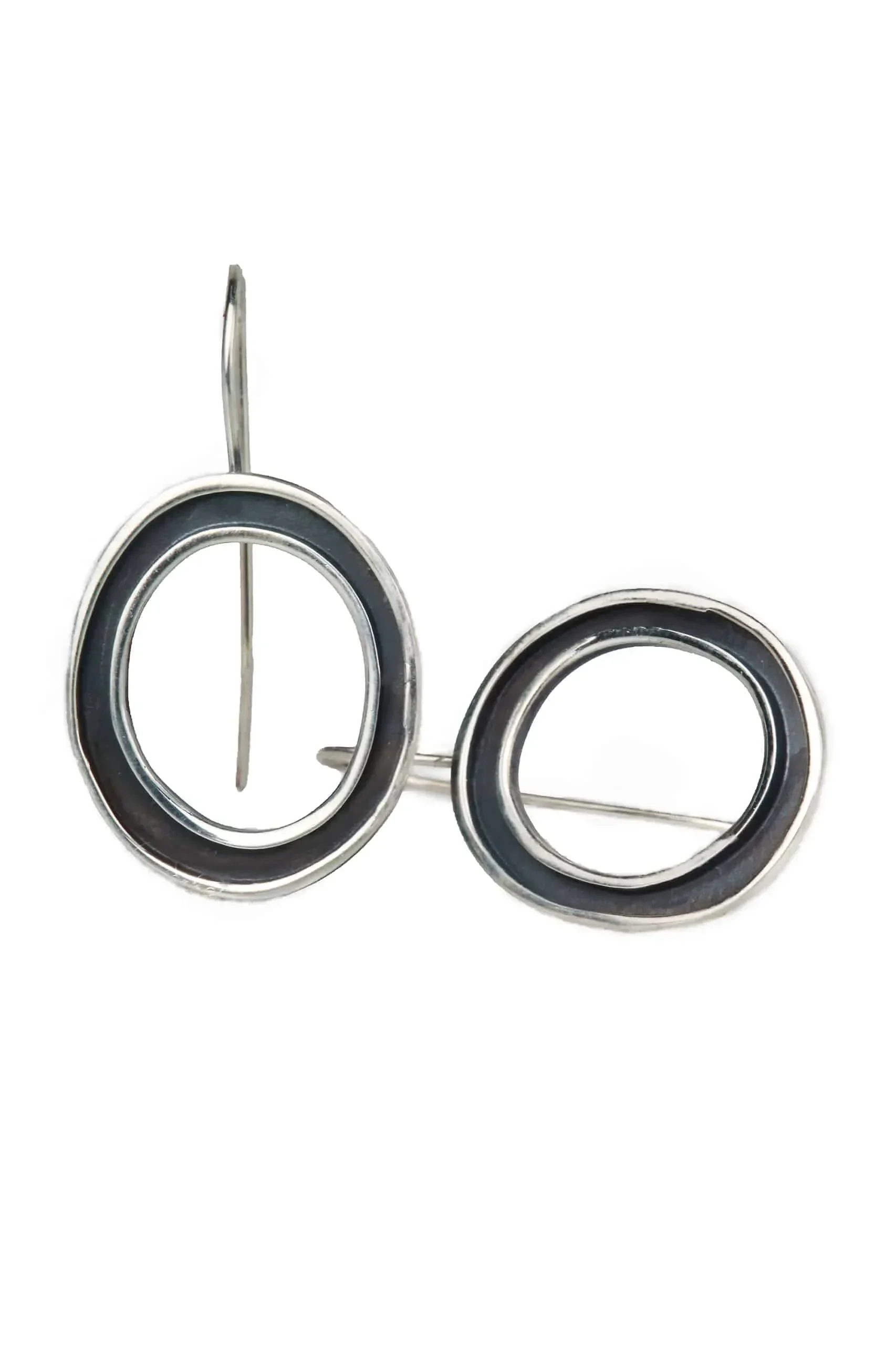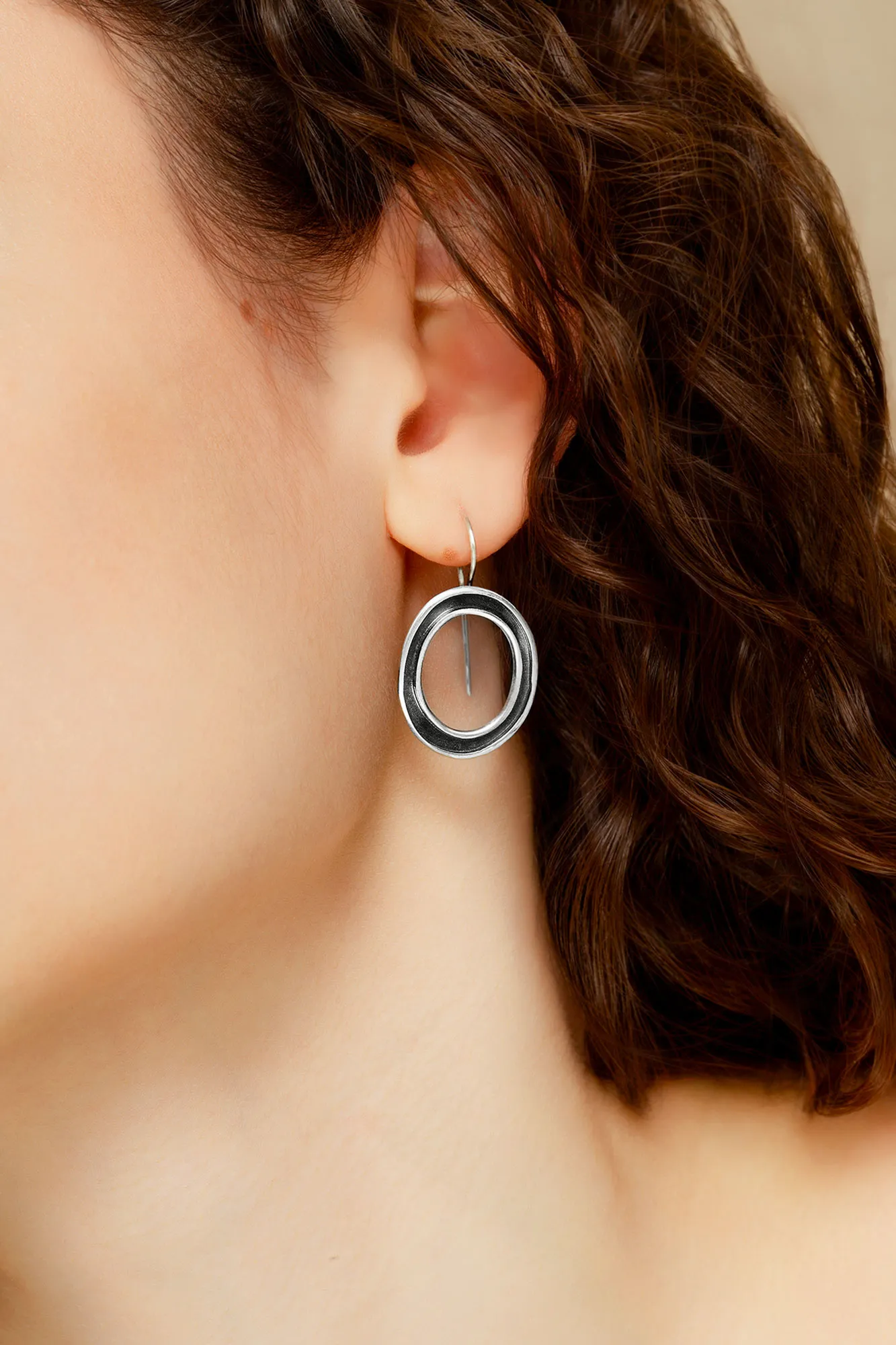 Οβάλ Χειροποίητα Οξειδωμένα Ασημένια Σκουλαρίκια