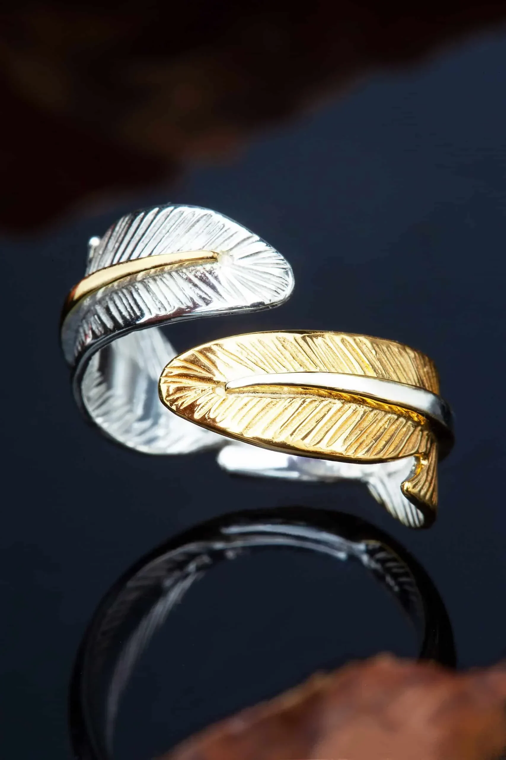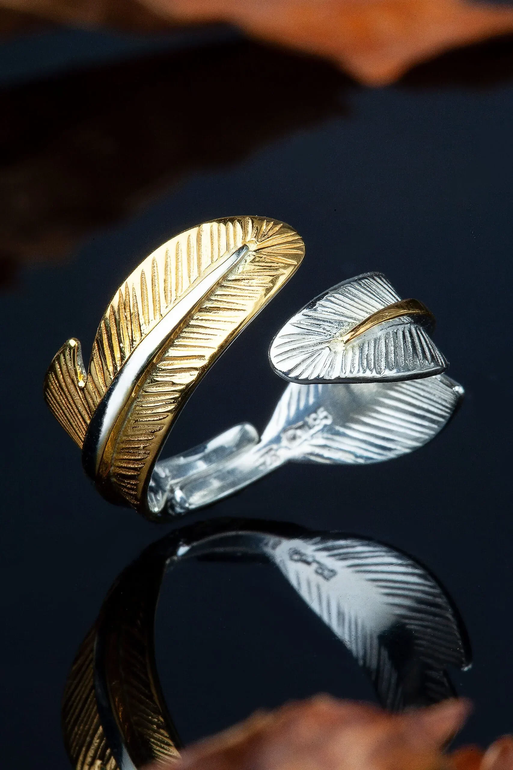 Ασημένιο δαχτυλίδι φτερά με επιχρύσωση και επιπλατίνωση