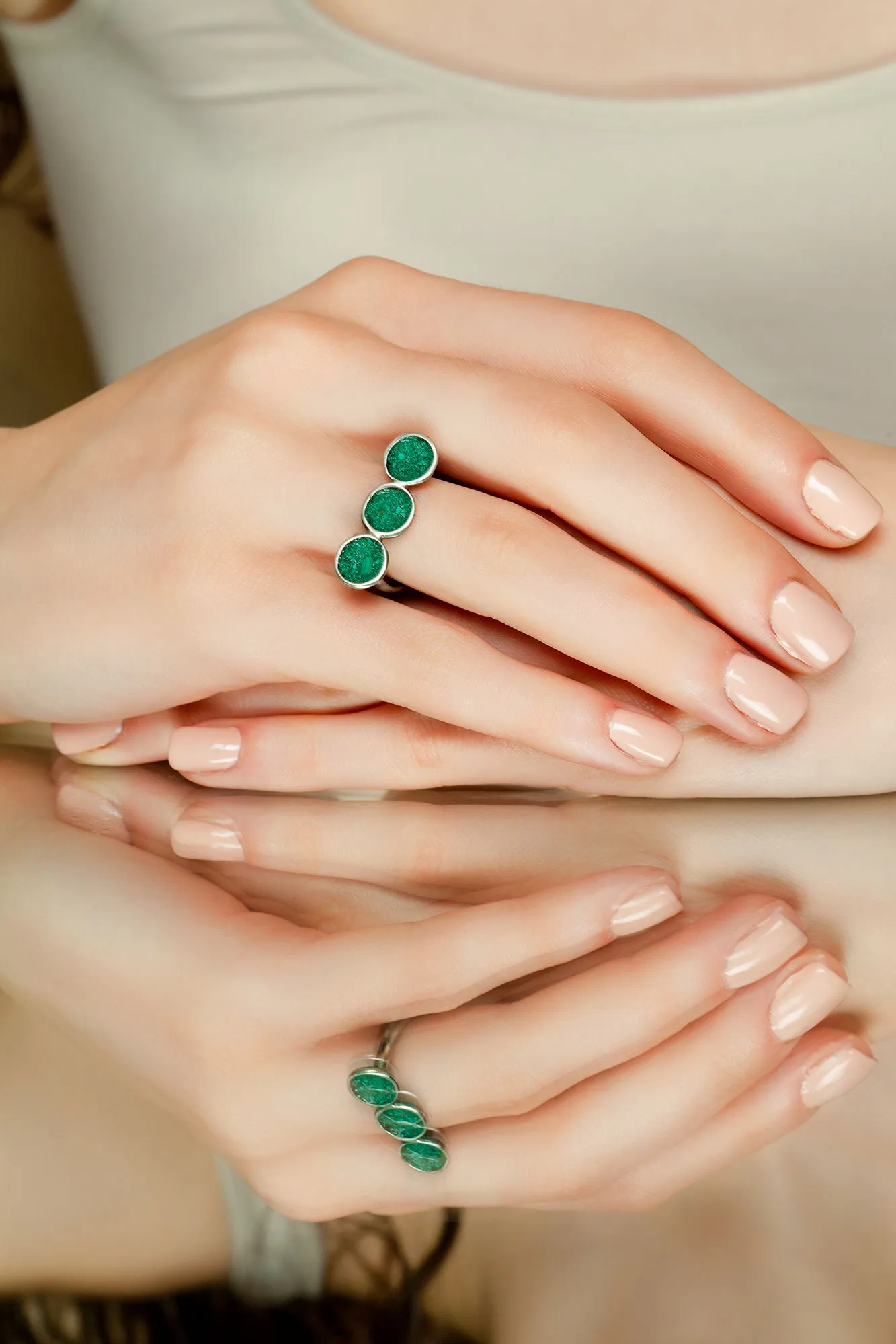 Ασημένιο μίνιμαλ δαχτυλίδι με μαλαχίτη