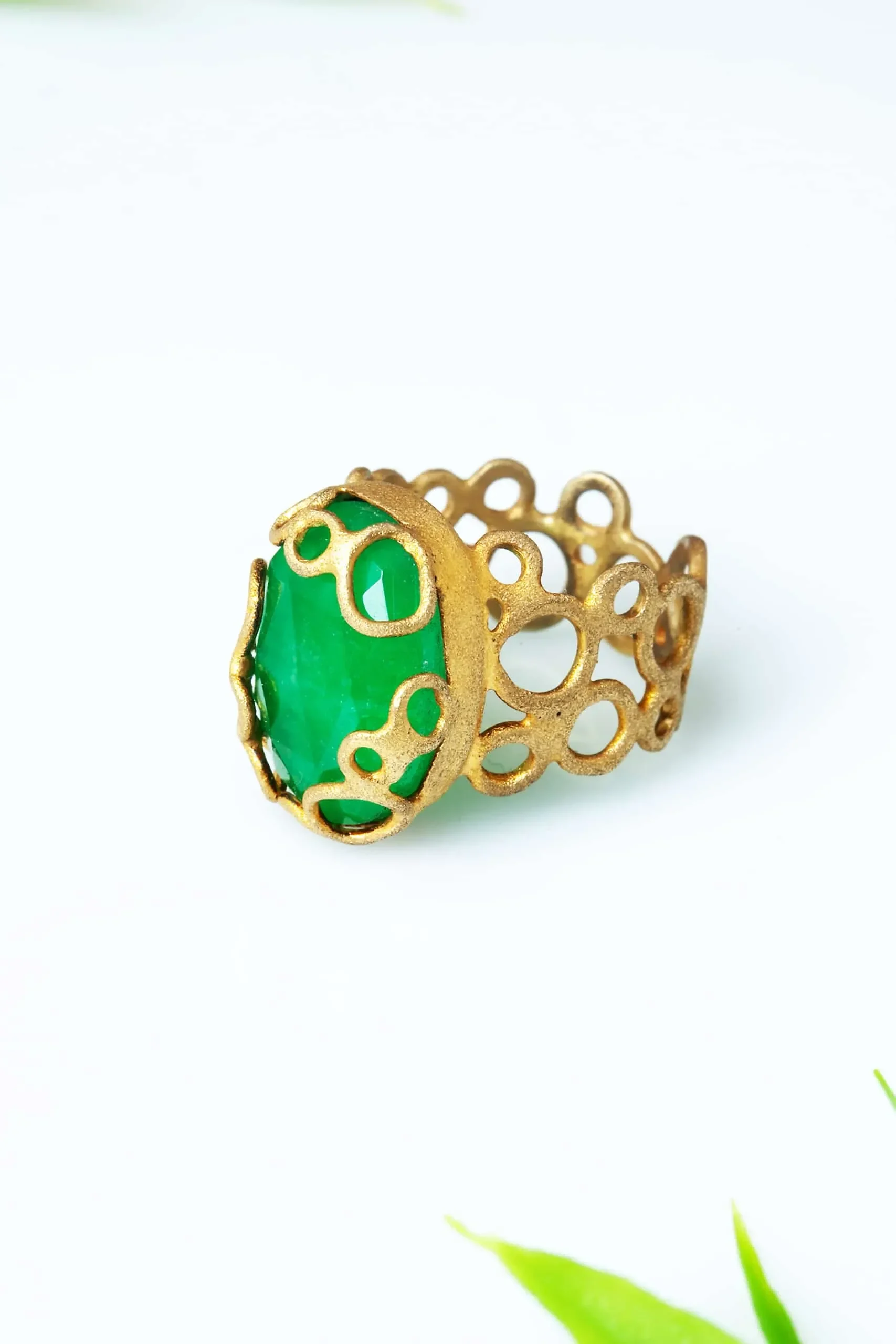 Επίχρυσο ασημένιο δαχτυλίδι με ζάντε και χαλαζία