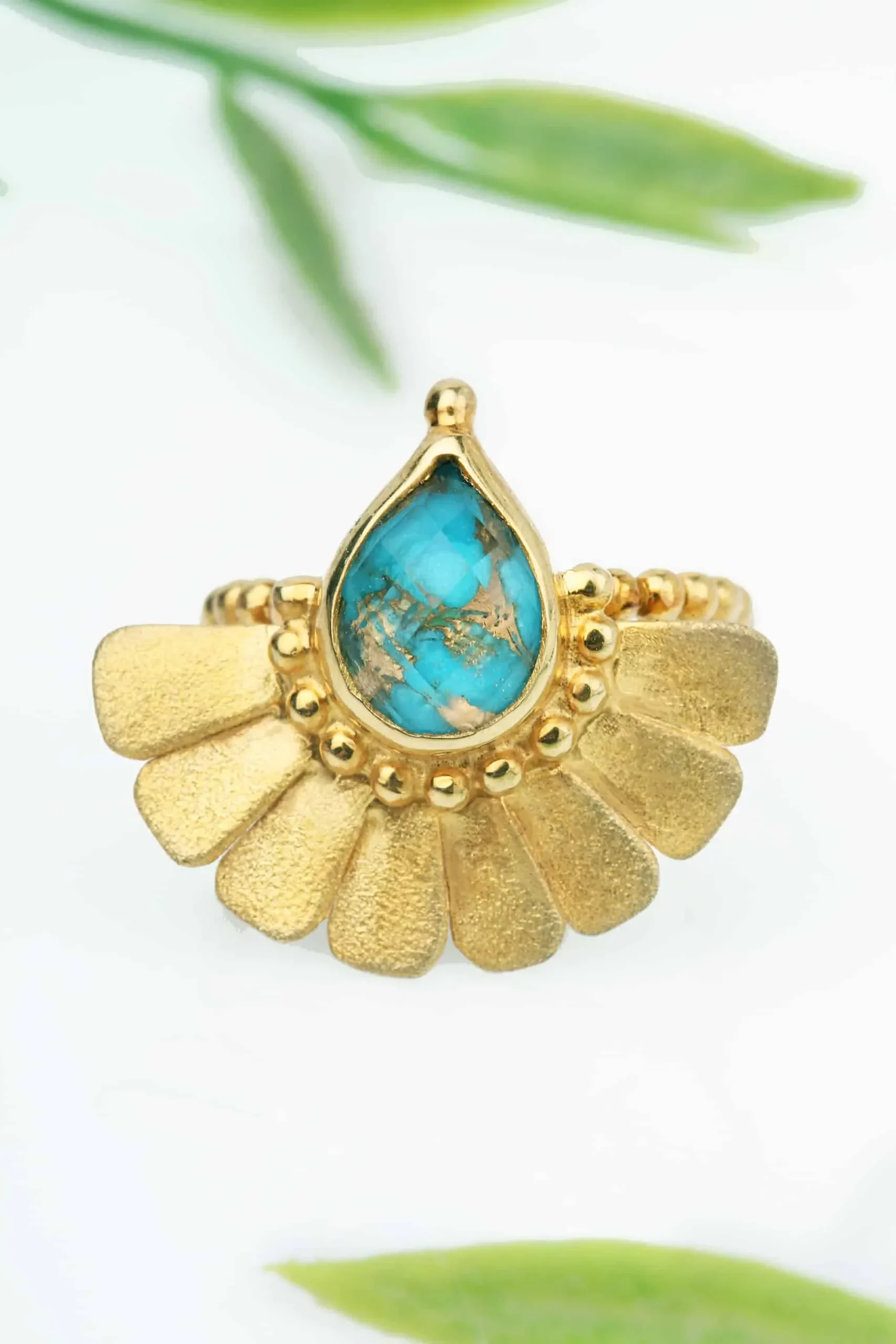 Ασημένιο επίχρυσο δαχτυλίδι με τουρκουάζ