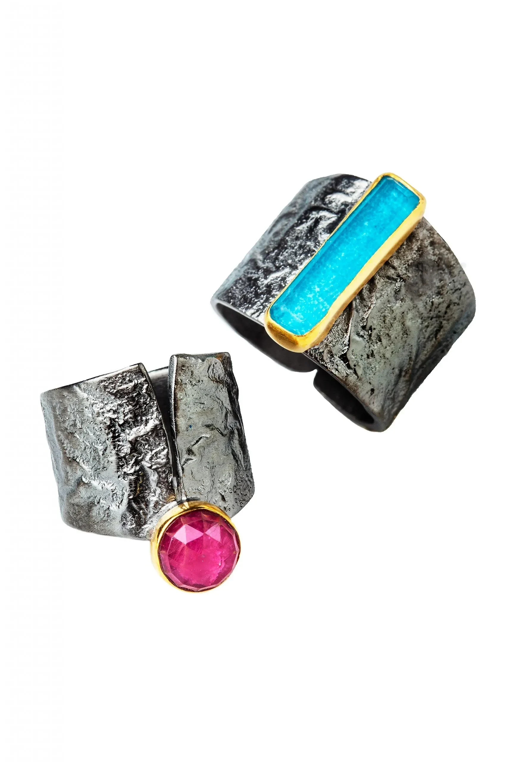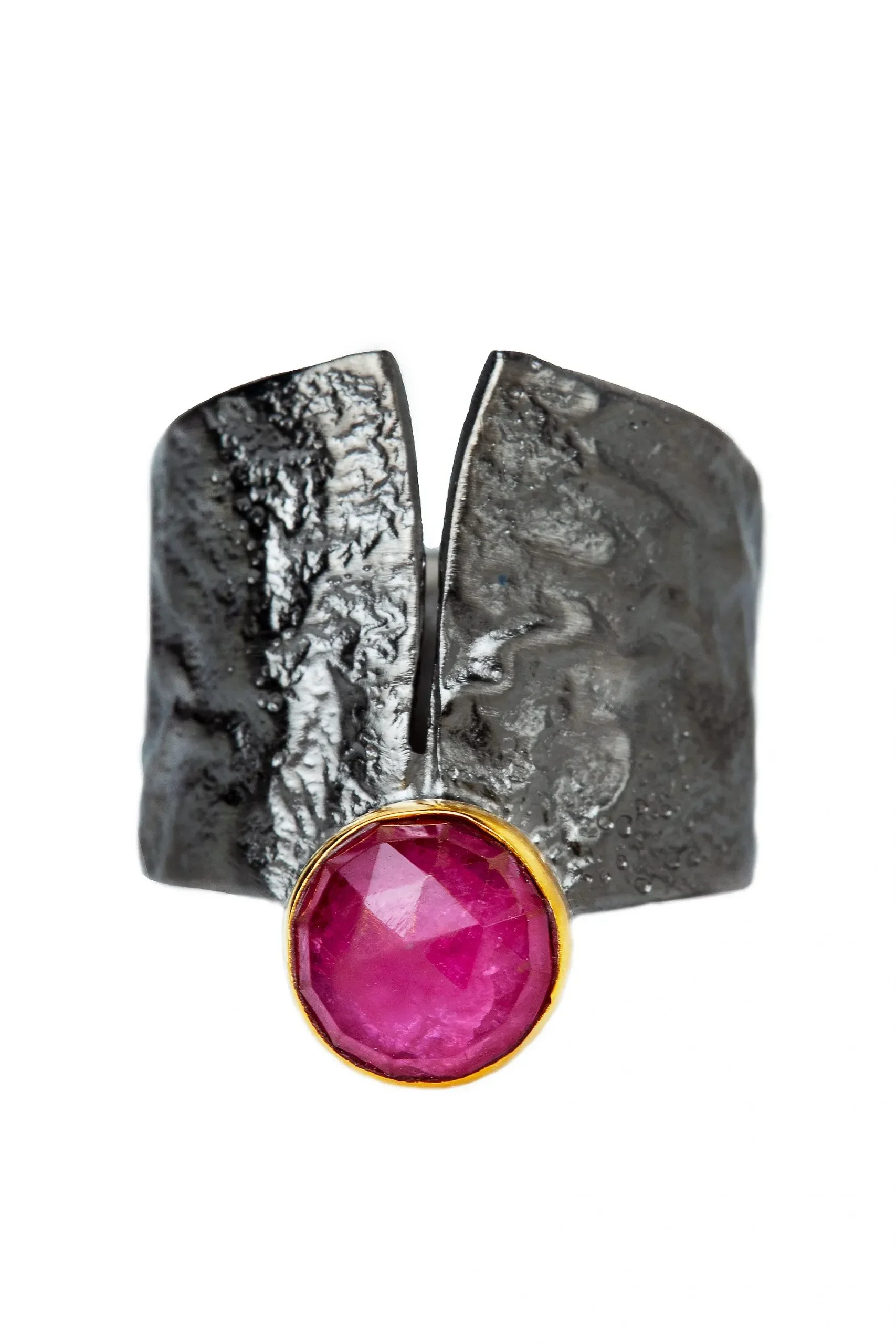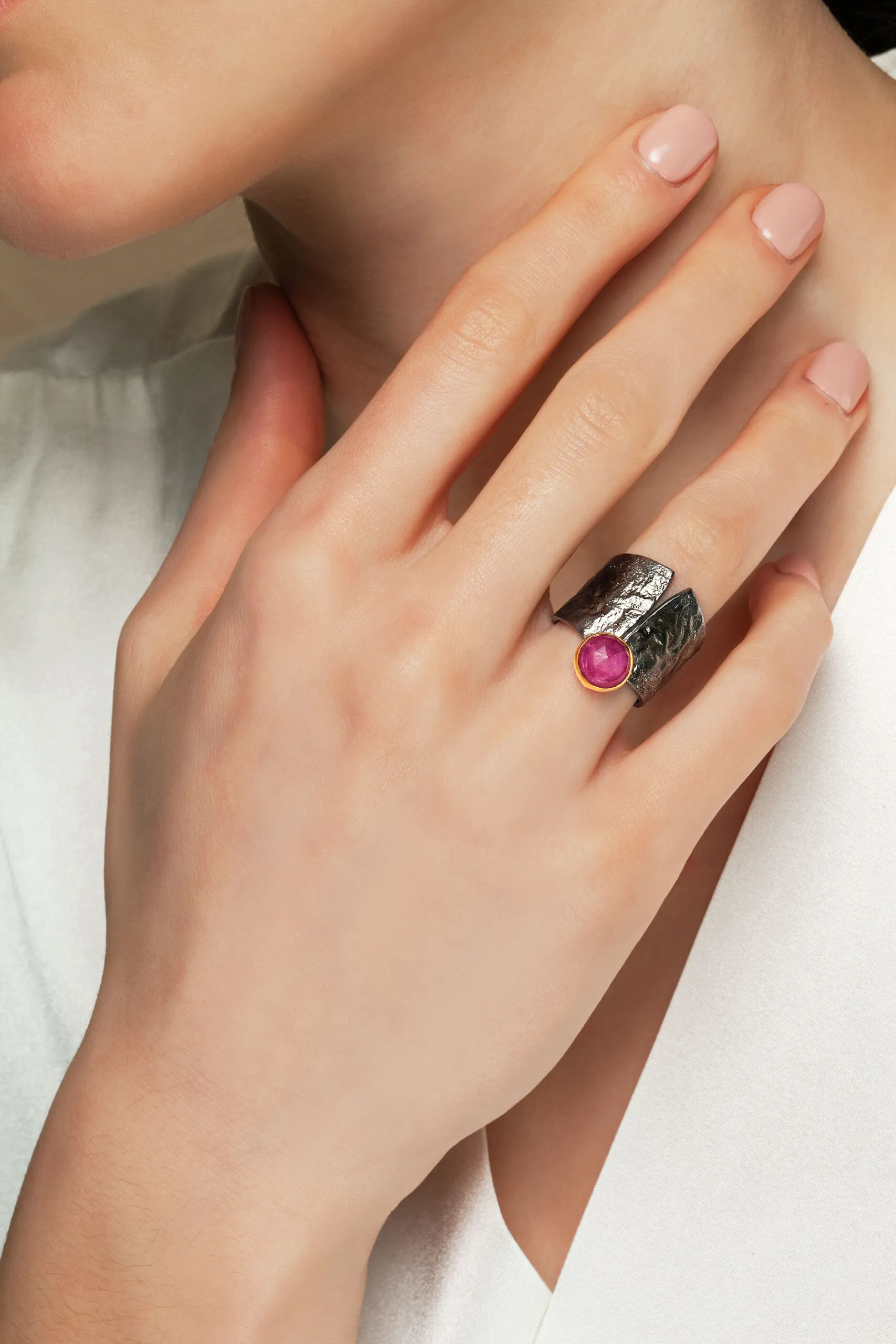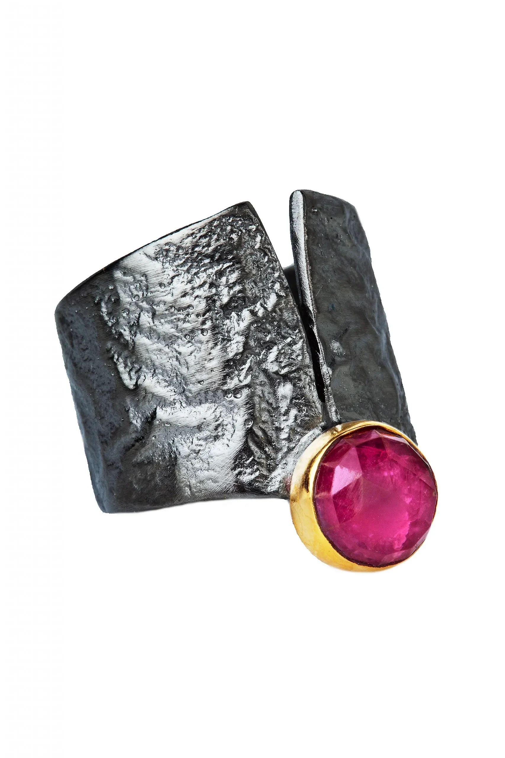 Ασημένιο δαχτυλίδι με ρουμπίνι και μαύρη επιπλατίνωση