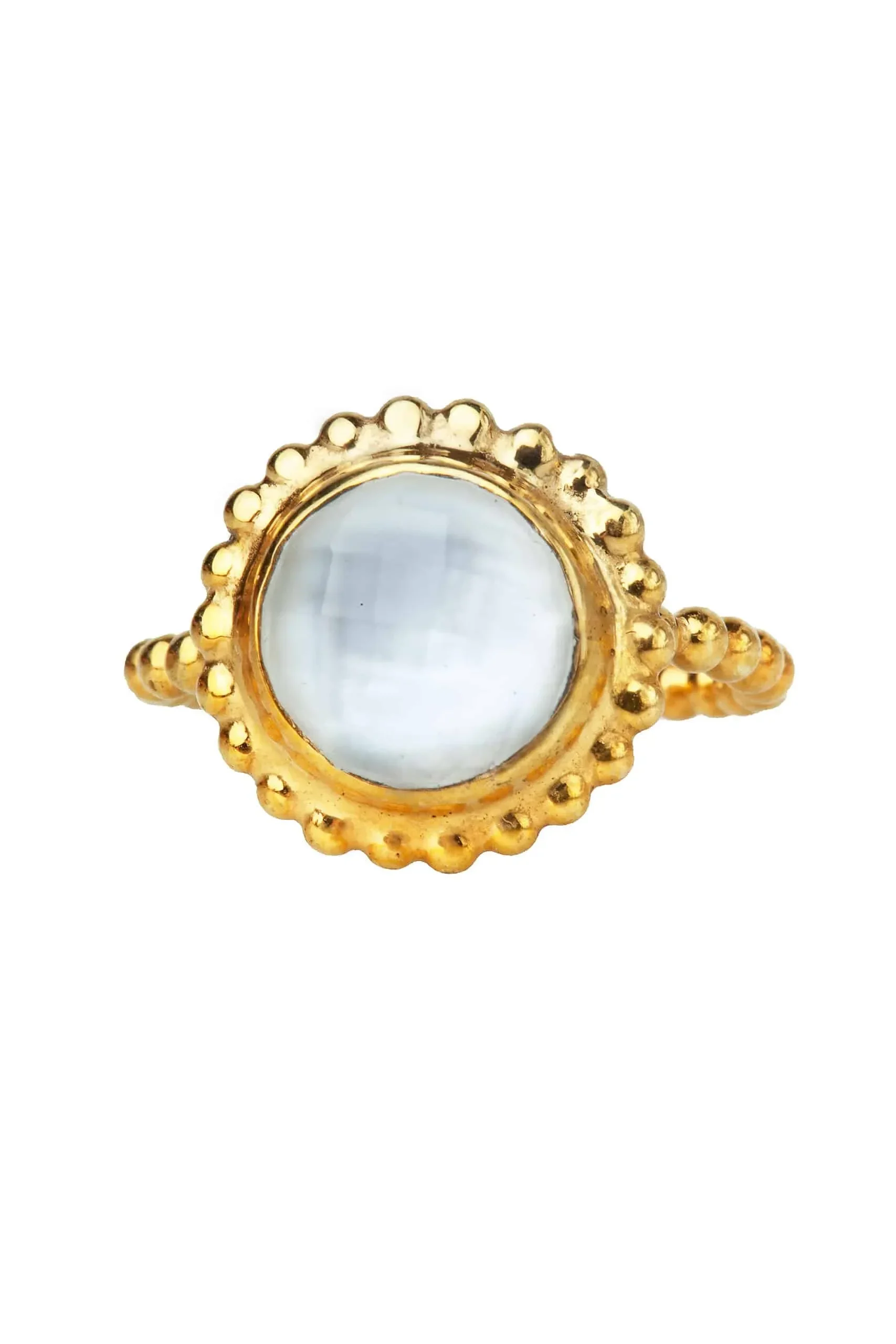 Ασημένιο 925 επίχρυσο δαχτυλίδι συνδυασμένο με φίλντισι και χαλαζία
