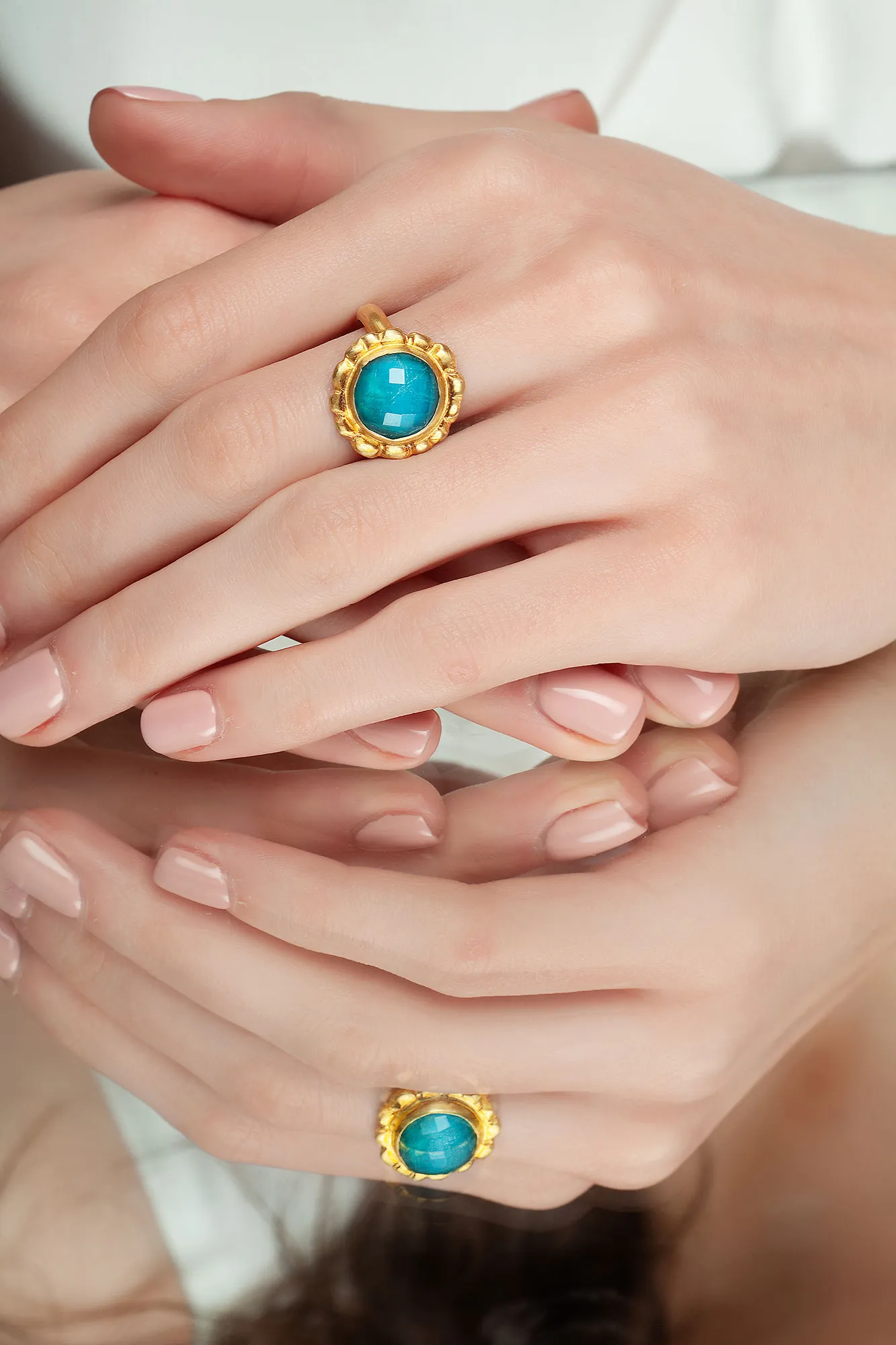Αυτό το εντυπωσιακό επίχρυσο ασημένιο δαχτυλίδι «Λουλούδι» με Χρυσόκολλα είναι το τέλειο αξεσουάρ για να προσθέσετε μια κομψή πινελιά σε κάθε σας εμφάνιση. Φιλοτεχνημένο από ασήμι 925, το δαχτυλίδι φέρει μια στρώση πολυτελούς επιχρύσωσης για μια διαχρονική και σοφιστικέ εμφάνιση. Ο μοναδικός λίθος Χρυσόκολλα αποτελεί το επίκεντρο του κοσμήματος, με τις πανέμορφες μπλε-πράσινες αποχρώσεις του που σίγουρα θα τραβήξουν τα βλέμματα. Είτε αναζητάτε ένα ξεχωριστό δώρο είτε ένα καθημερινό Μίνιμαλ αξεσουάρ, αυτό το πανέμορφο ανάγλυφο δαχτυλίδι είναι σχεδιασμένο για να κάνει τη διαφορά.