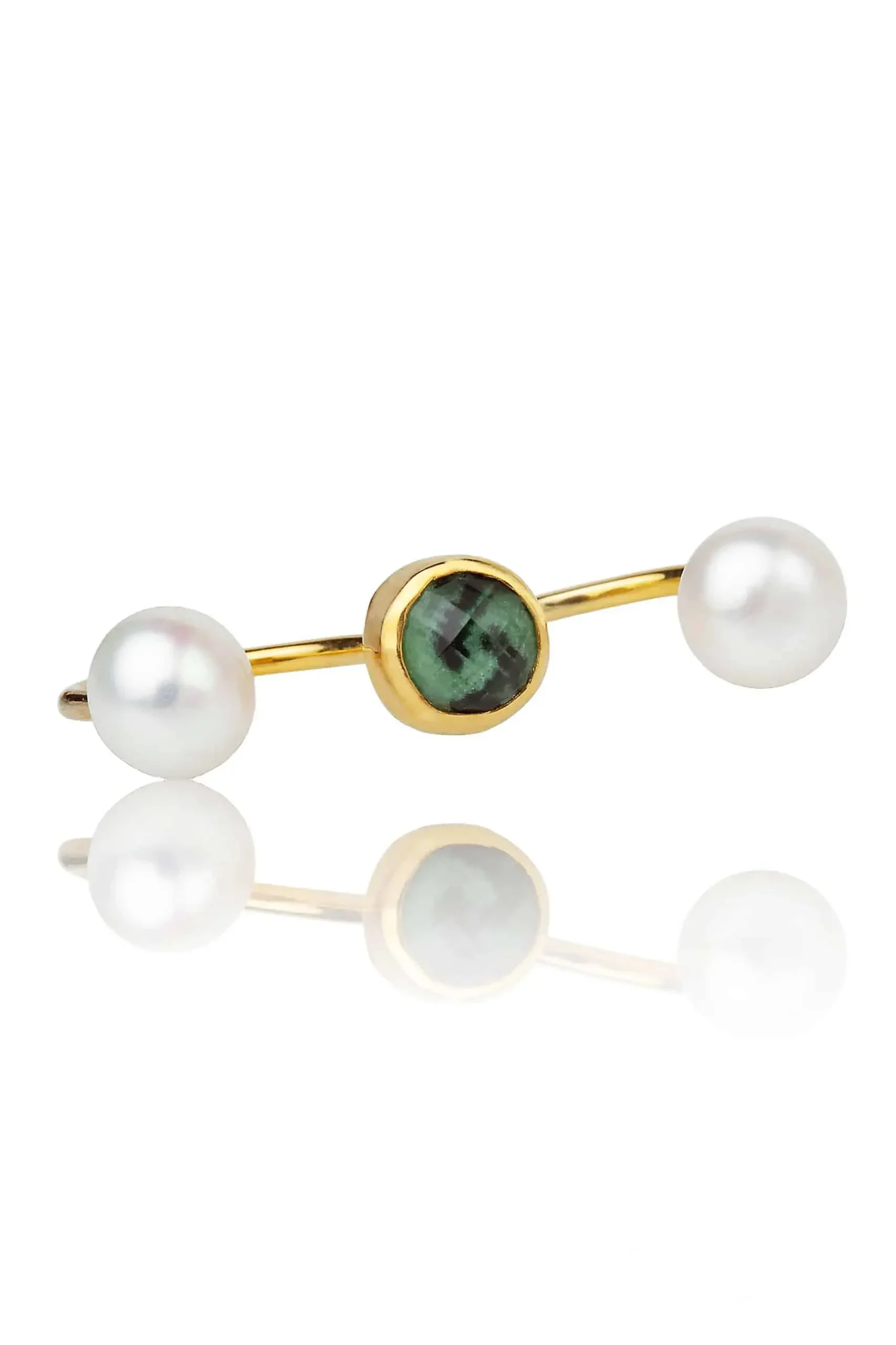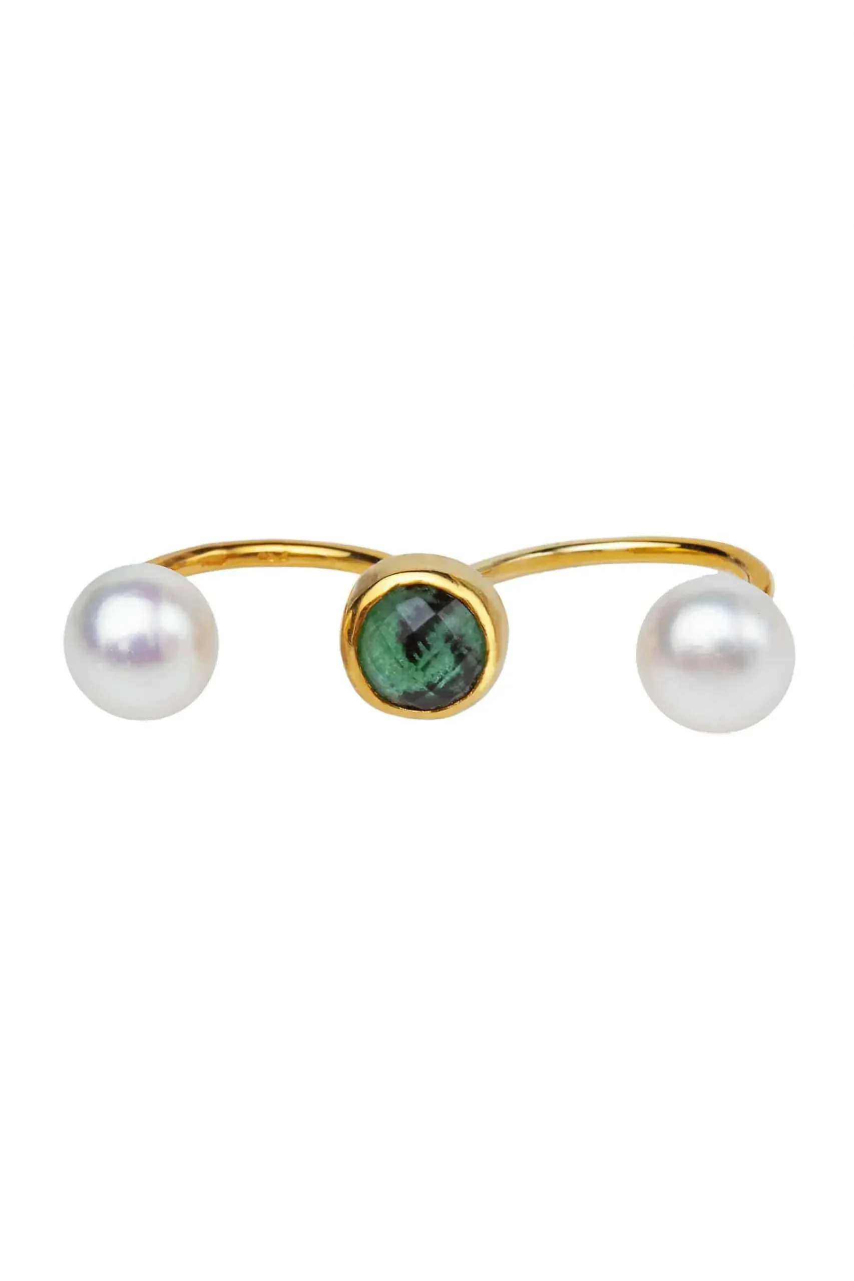Ασημένιο επιχρυσωμένο διπλό δαχτυλίδι με ζοϊσίτη και μαργαριτάρια