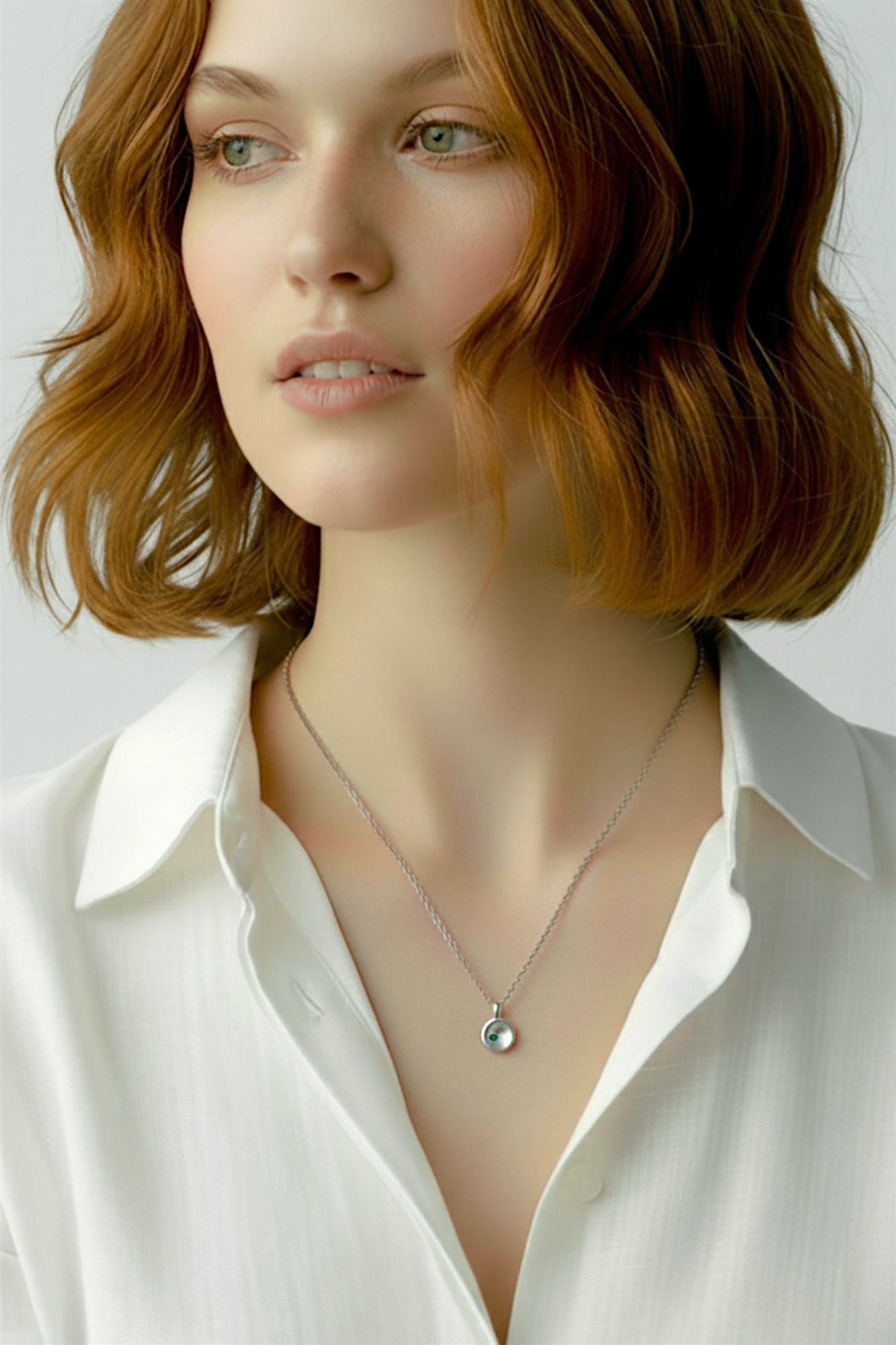 Το επίκεντρο αυτού του κοσμήματος είναι ο πανέμορφος πράσινος αχάτης, μια πέτρα γνωστή για τις καταπραϋντικές και εξισορροπητικές της ιδιότητες. Το στρογγυλό σχήμα του μενταγιόν προσθέτει μια μοντέρνα πινελιά στην κλασική ασημένια αλυσίδα, δημιουργώντας ένα ευέλικτο και διαχρονικό κομμάτι που μπορεί να φορεθεί σε κάθε περίσταση.