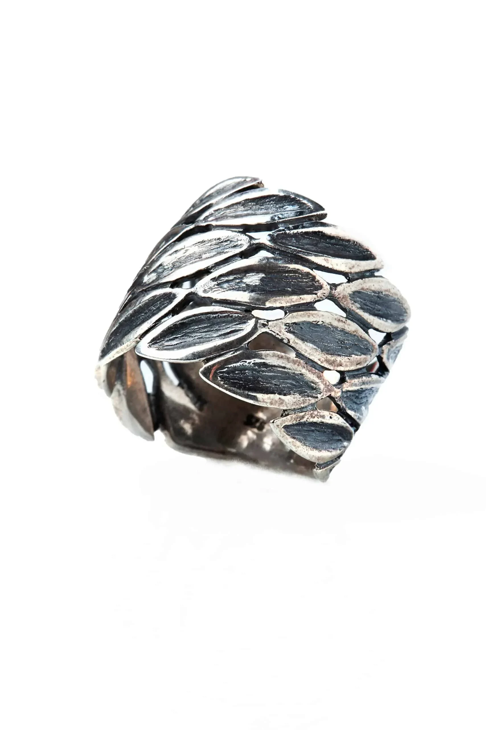 Ασημένιο οξειδωμένο δαχτυλίδι φύλλα ελιάς