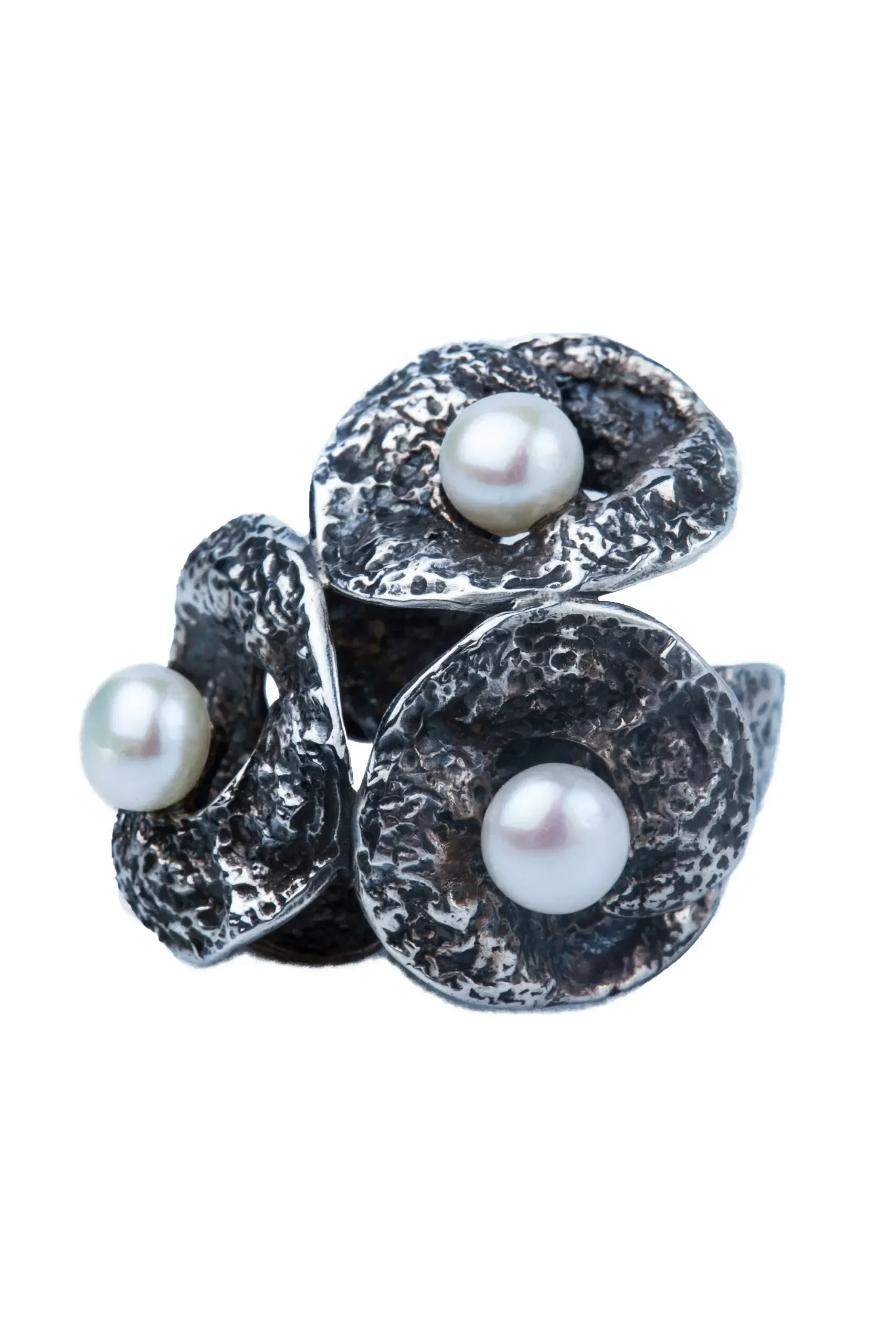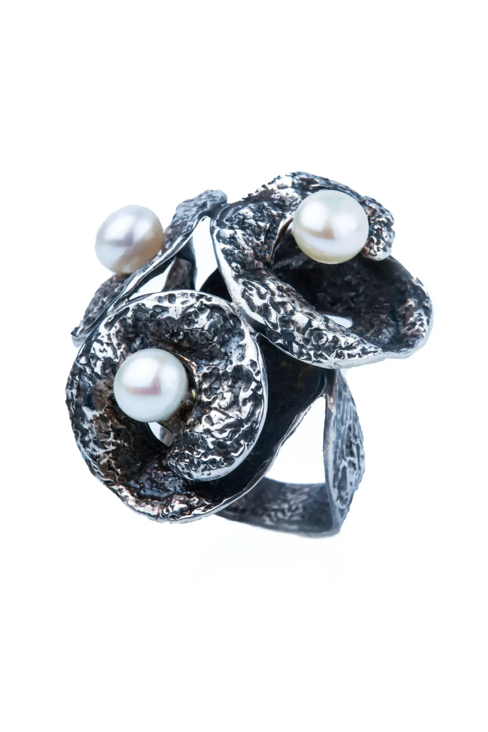 Ασημένιο οξειδωμένο δαχτυλίδι με μαργαριτάρια
