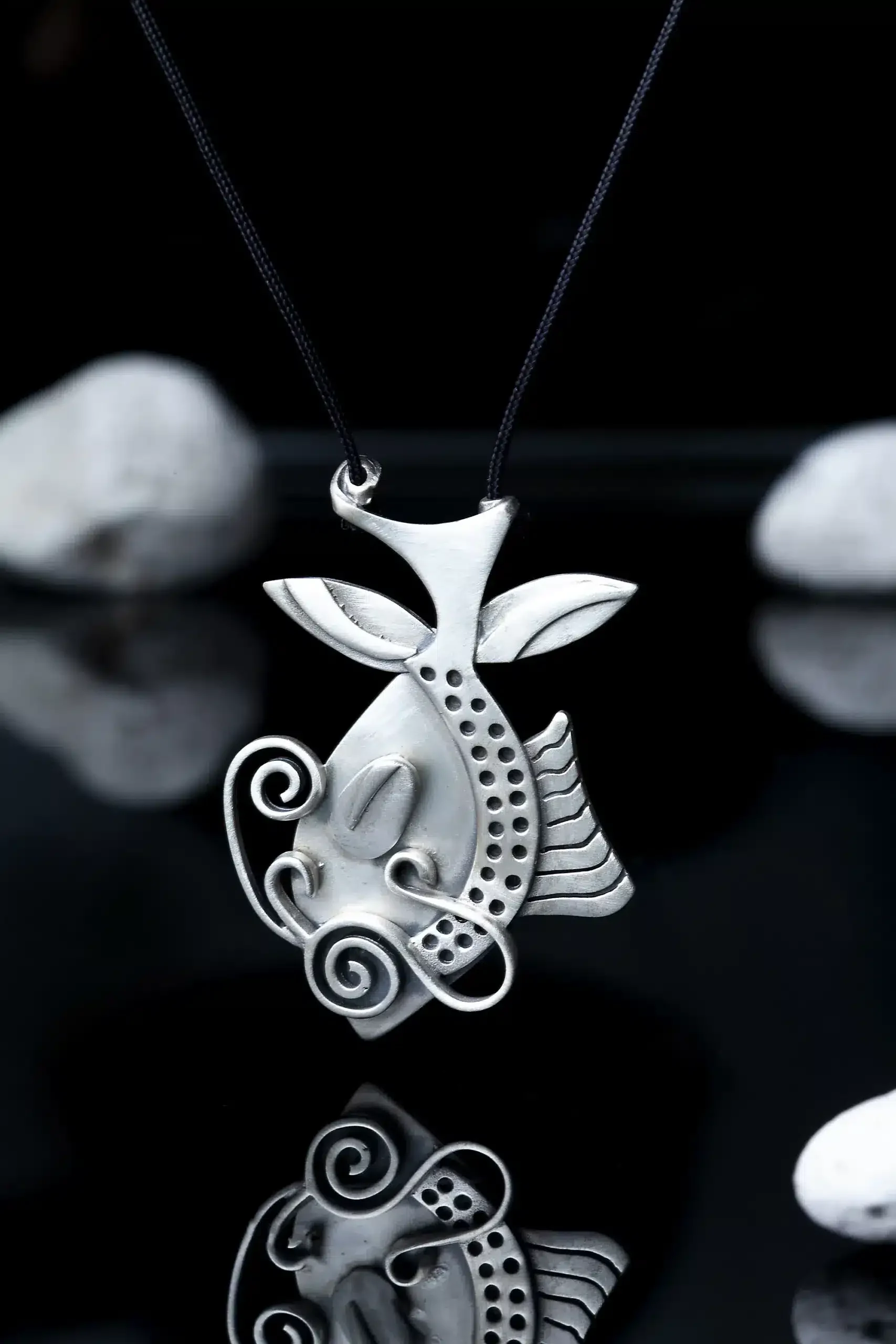 Ασημένιο οξειδωμένο κολιέ ψάρι