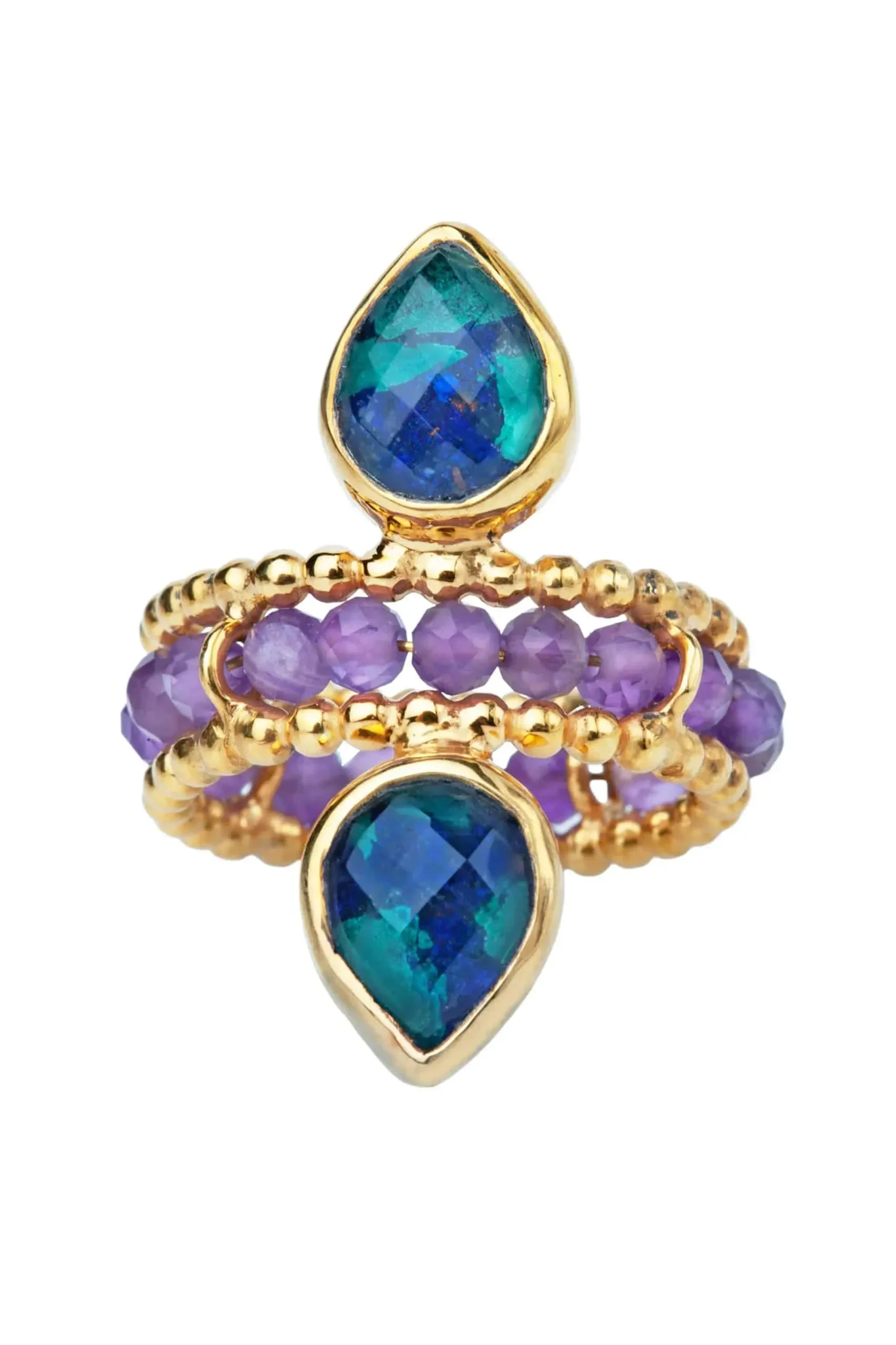 Αζουρίτης με μαλαχίτη ασημένιο επιχρυσωμένο δαχτυλίδι συνδυασμένο με αμέθυστο