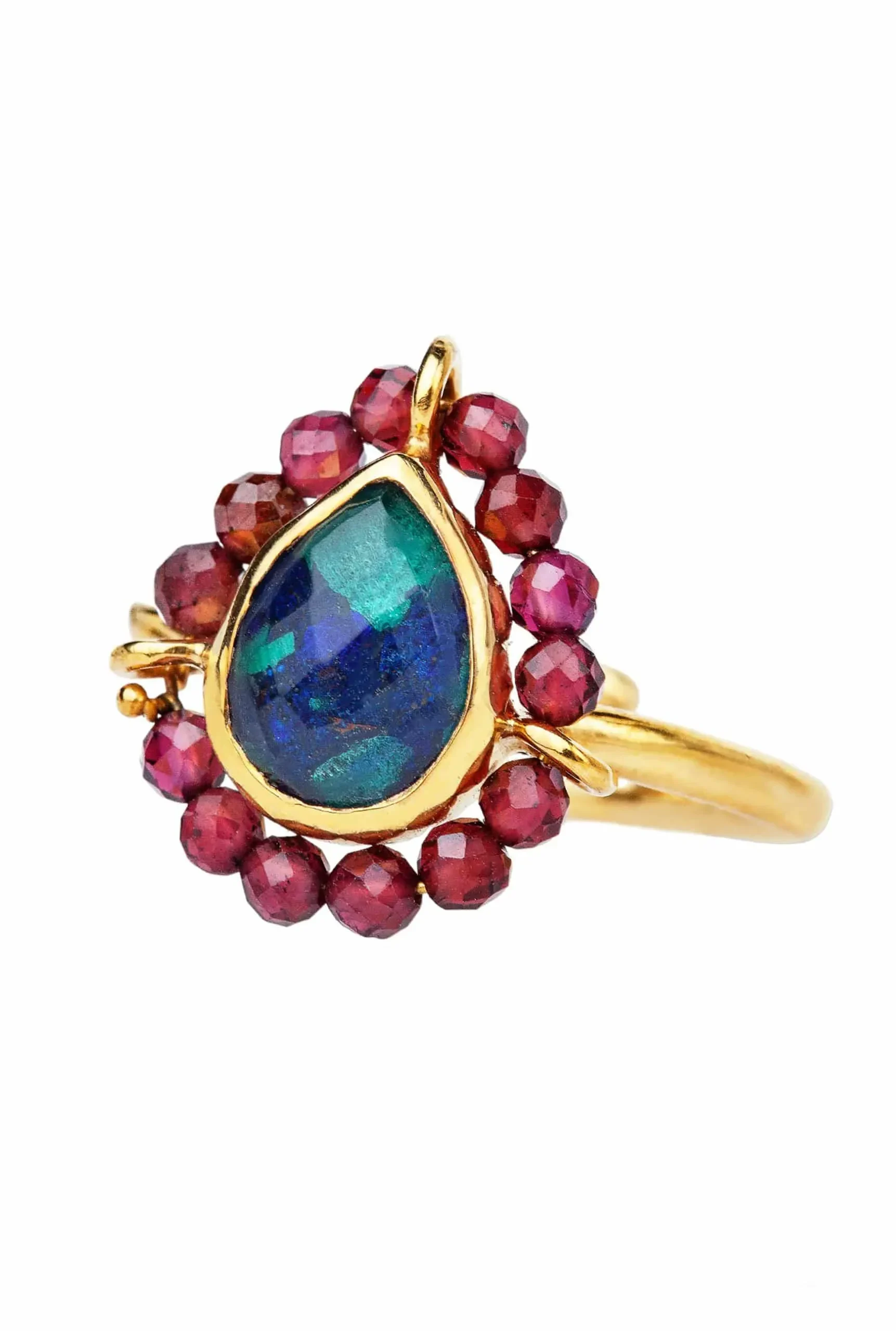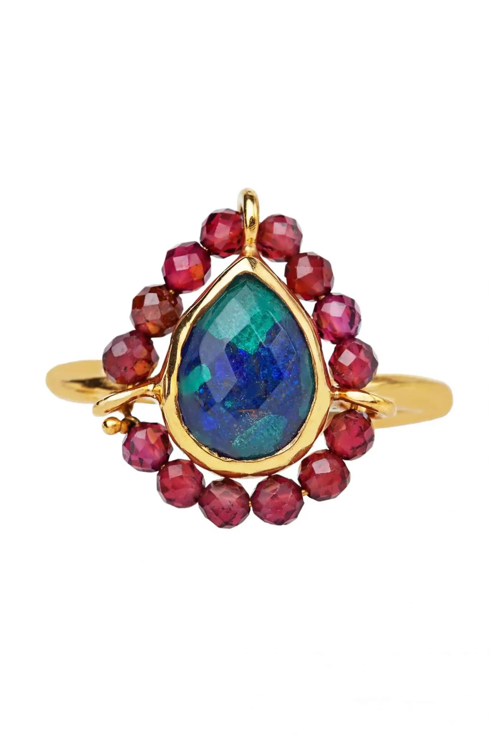 Αζουρίτης με μαλαχίτη ασημένιο επιχρυσωμένο δαχτυλίδι συνδυασμένο με γρανάδα. Το μέγεθος είναι προσαρμόσιμο.