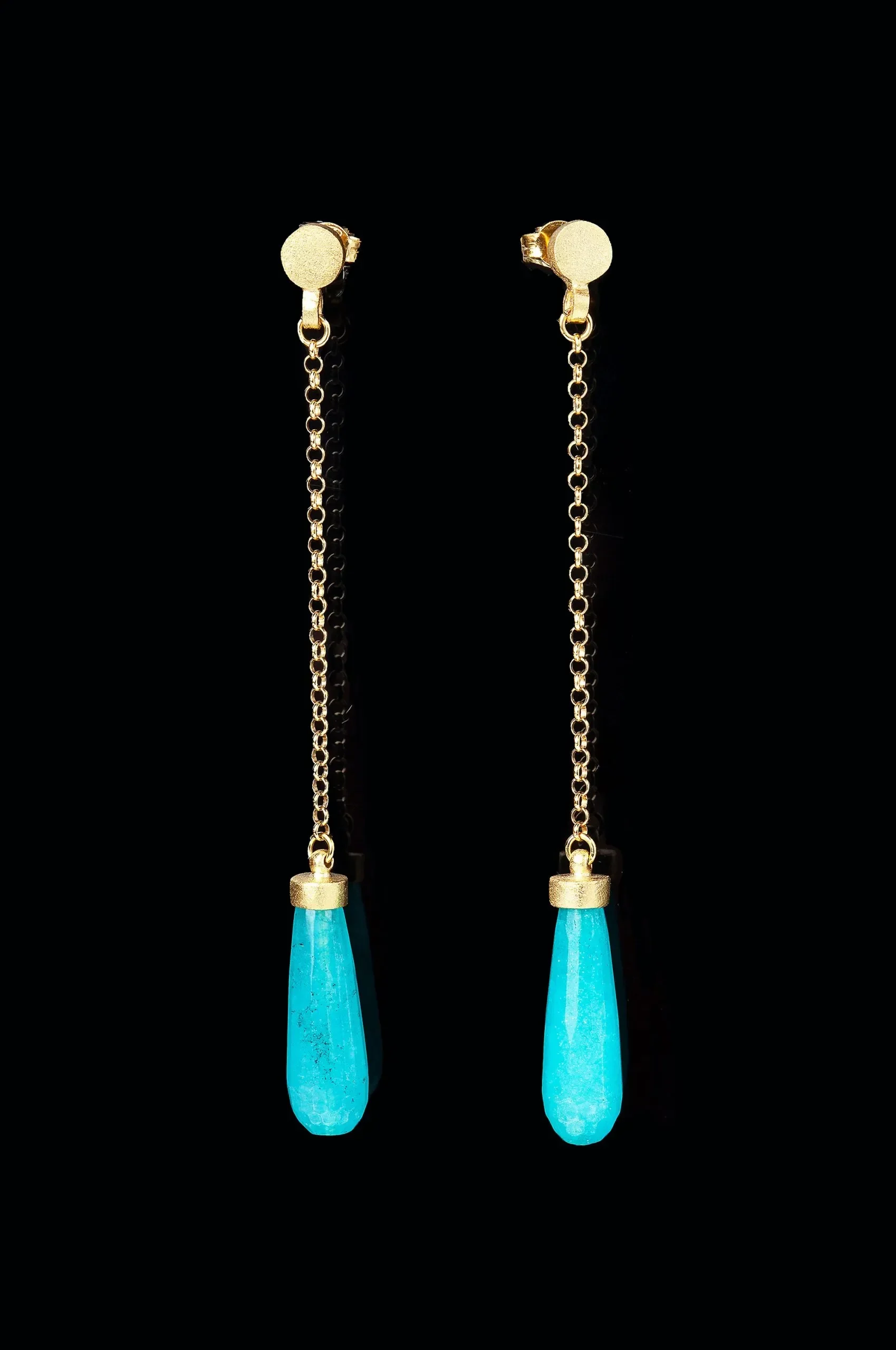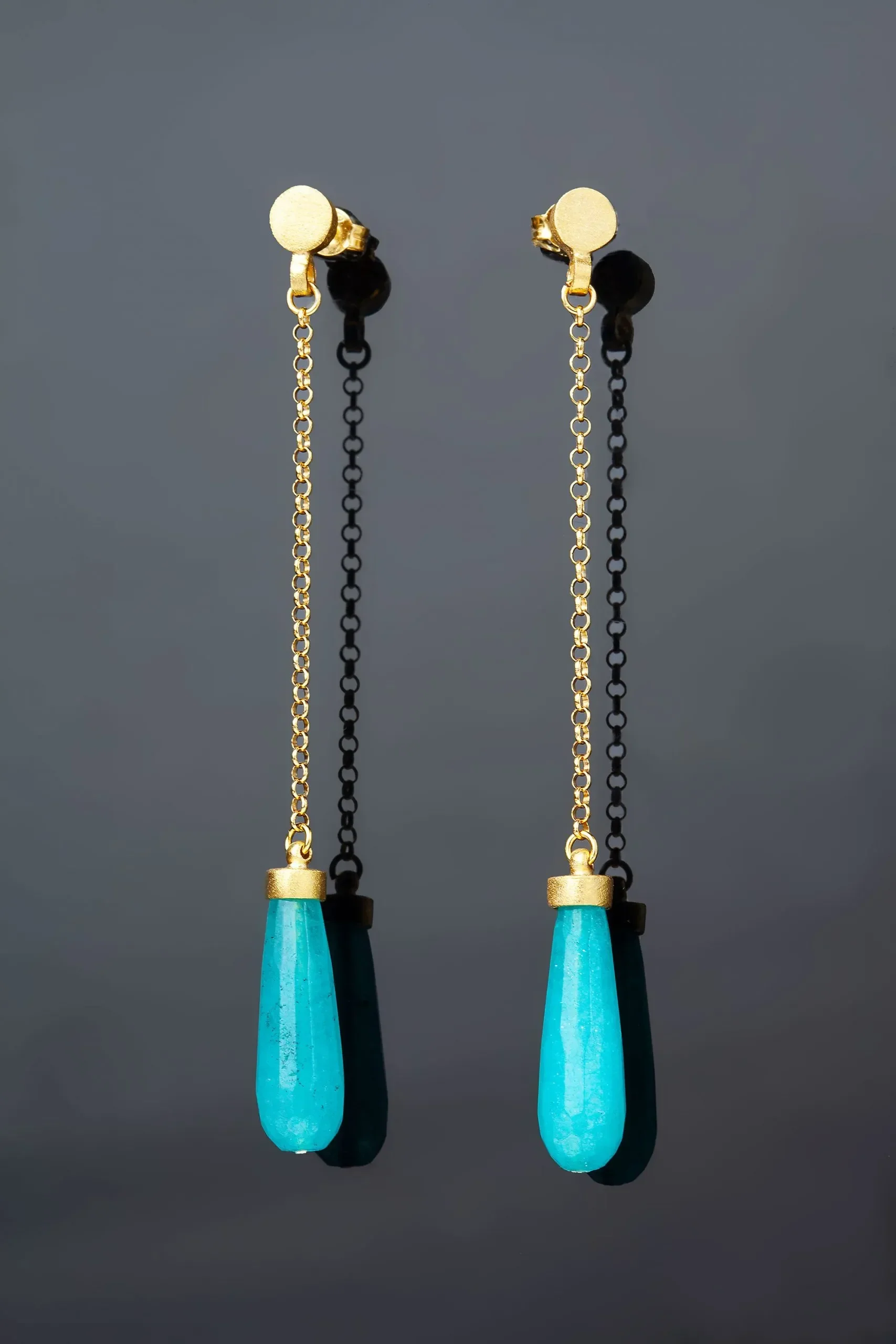 Δάκρυα μακριά ασημένια επίχρυσα σκουλαρίκια με μπλε χαλαζία