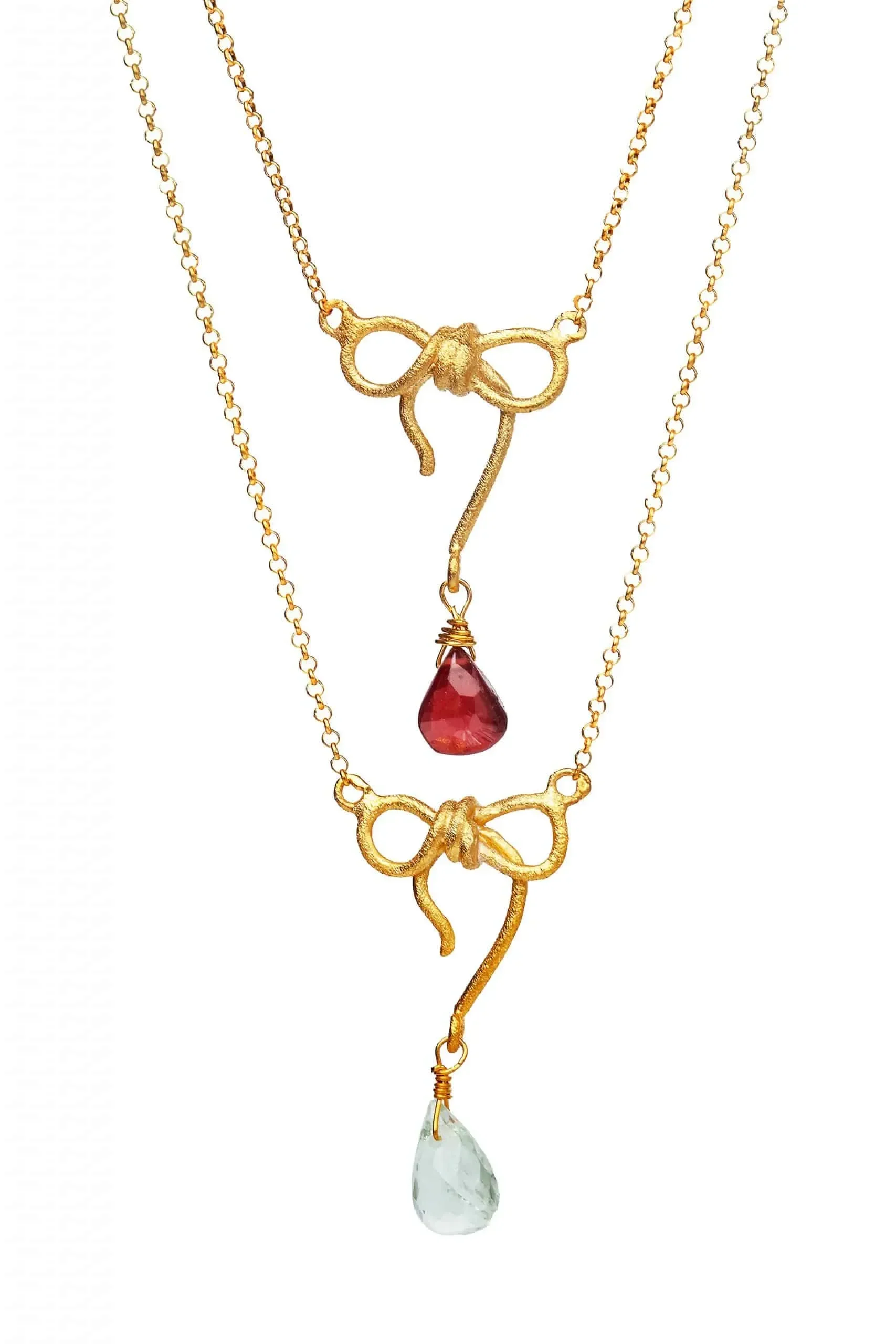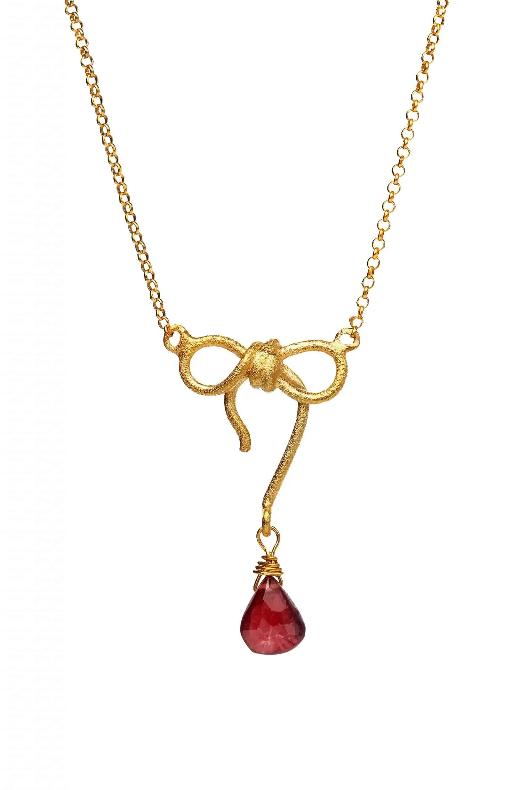 Φιόγκος ασημένιο επιχρυσωμένο κολιέ με γρανάδα