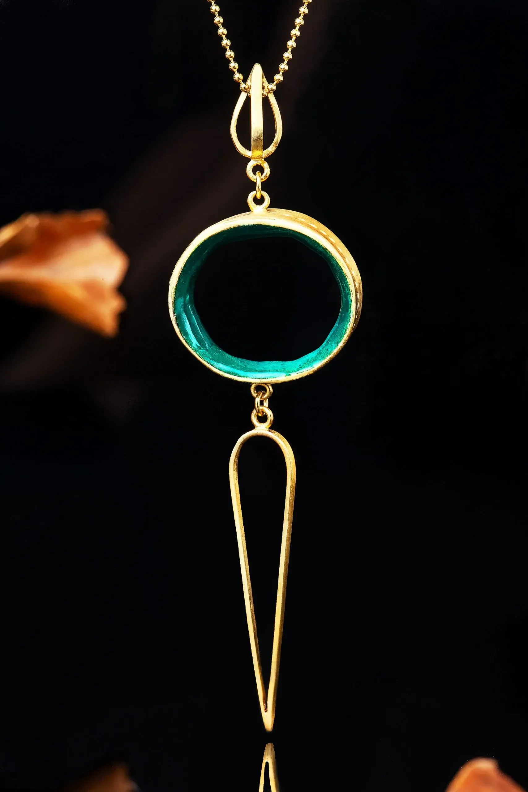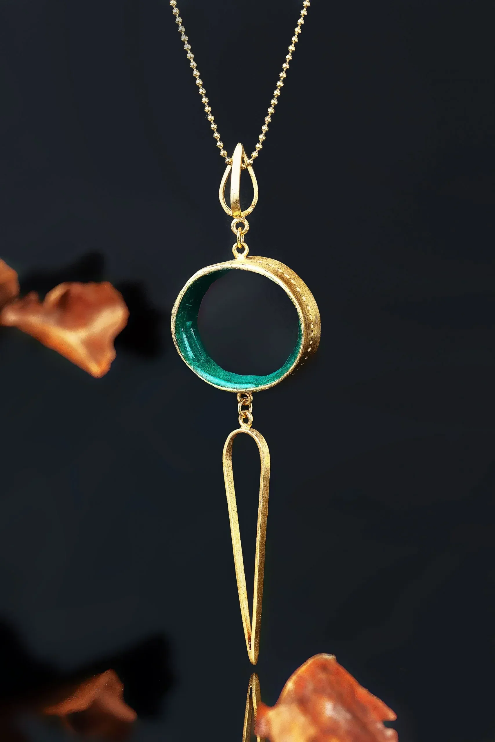 Γεωμετρικό επίχρυσο ασημένιο κολιέ με πράσινο σμάλτο