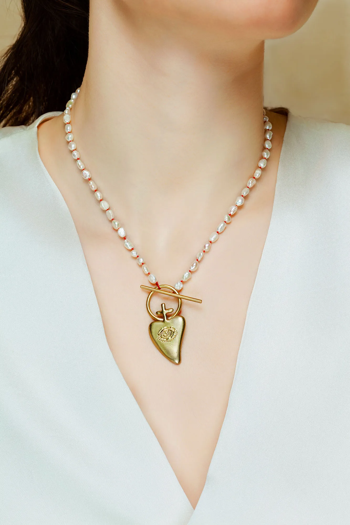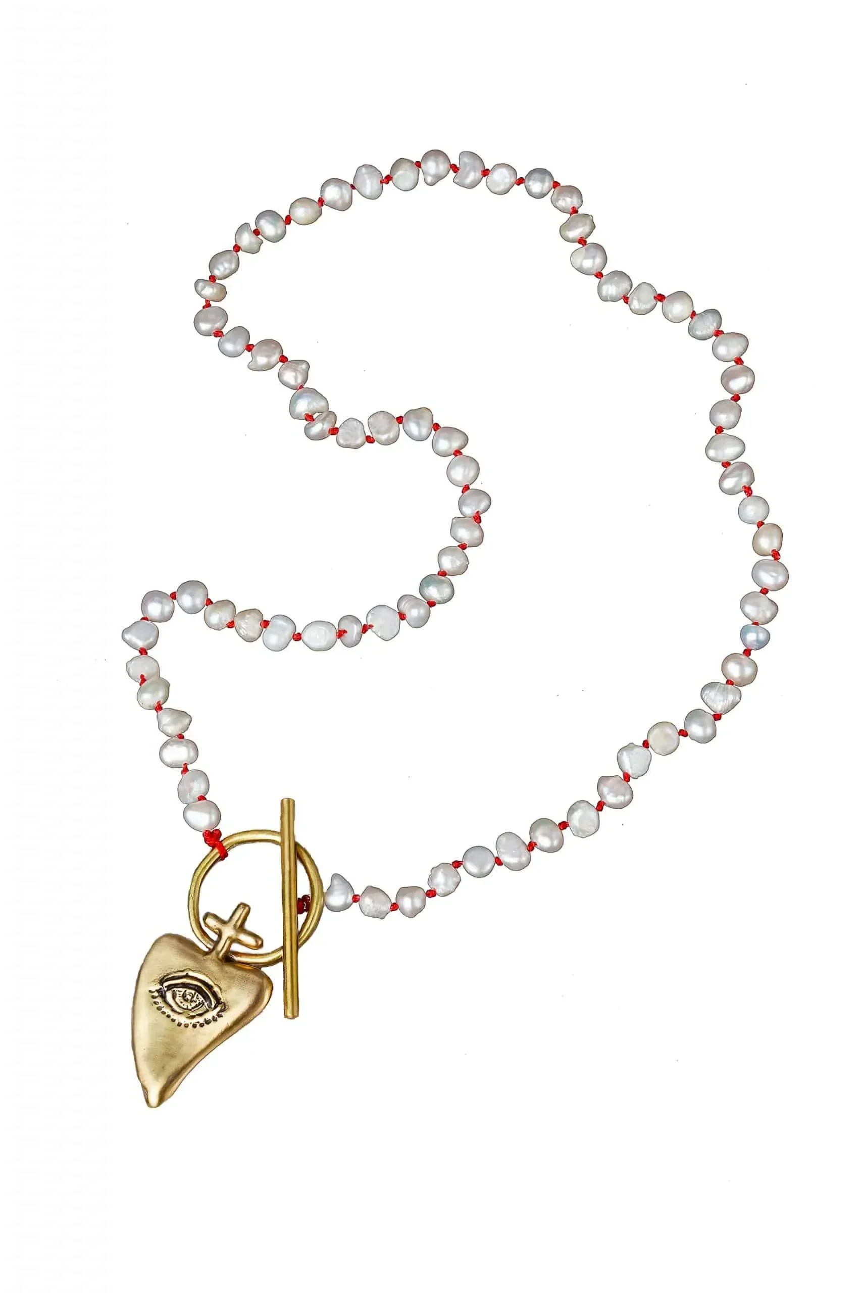 Καρδιά κολιέ από ορείχαλκο με μαργαριτάρια
