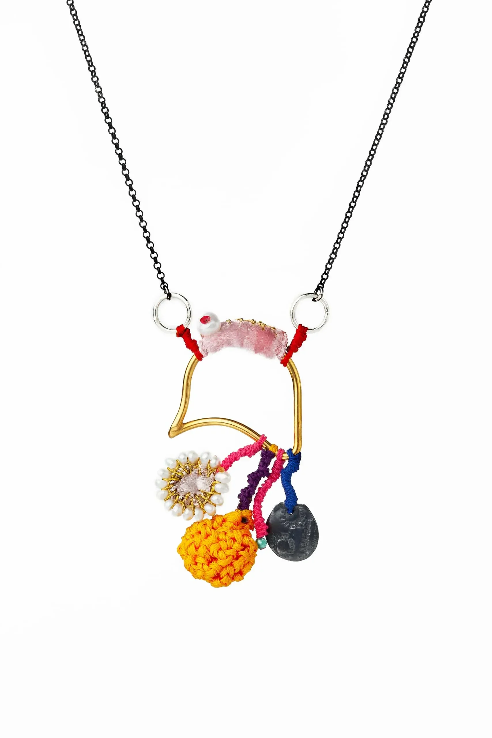 Κολιέ από ασήμι, με επιχρύσωση, λευκή και μαύρη επιπλατίνωση συνδυασμένο με μαργαριτάρια, πλεκτά και βελούδινα στοιχεία
