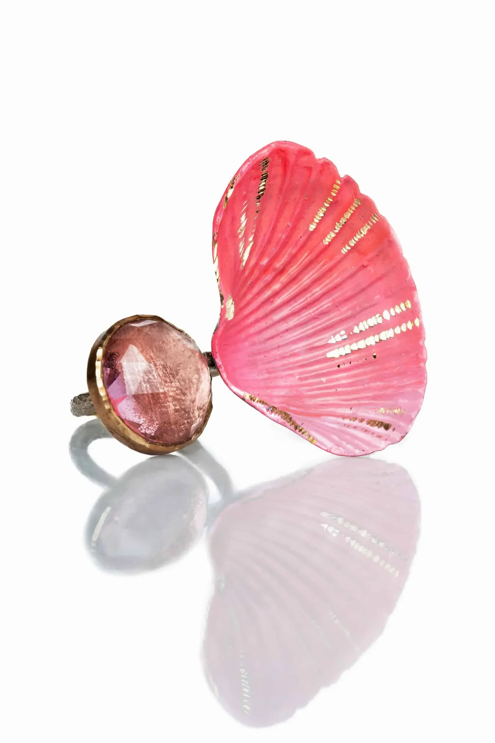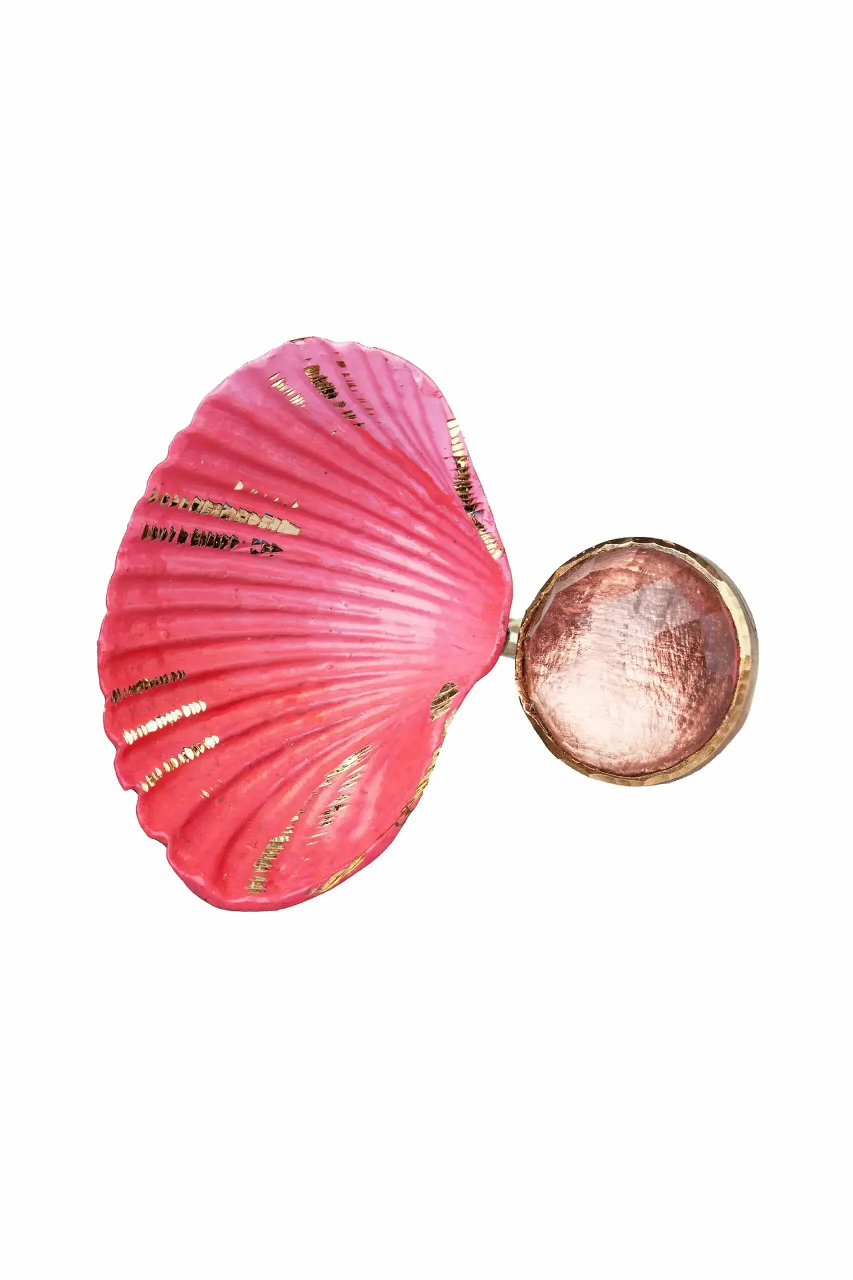 Κοχύλι δαχτυλίδι από ορείχαλκο με κρύσταλλο και χρωματιστή πατίνα