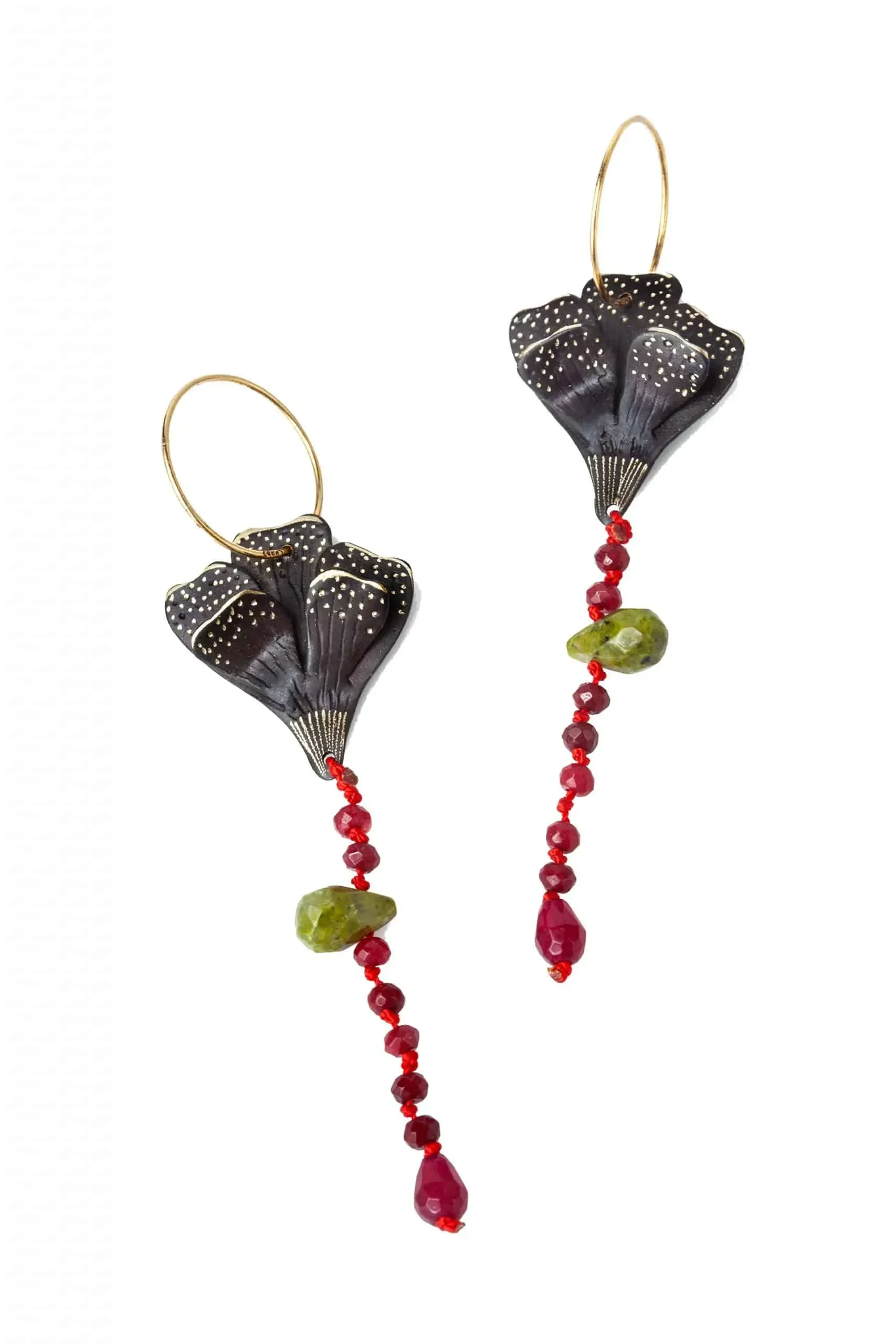 Λουλούδια χαραγμένα σκουλαρίκια από ορείχαλκο με ζάντε και γρανάδα. Ασημένιοι 925 επίχρυσοι κρίκοι.