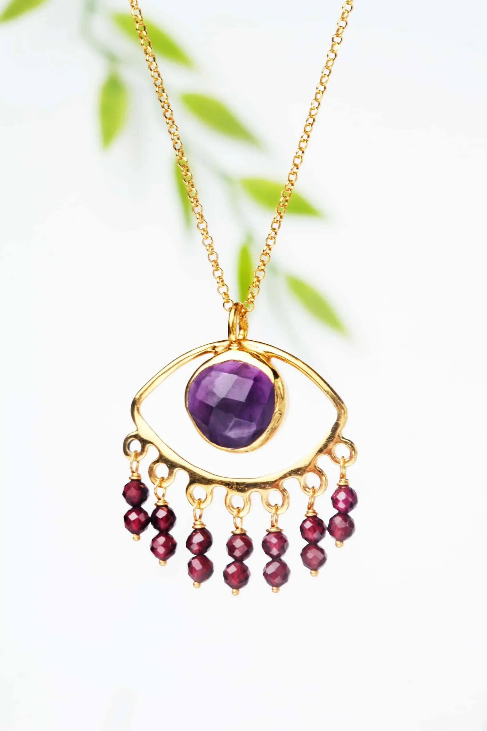 Μάτι επιχρυσωμένο ασημένιο κολιέ με αμέθυστο
