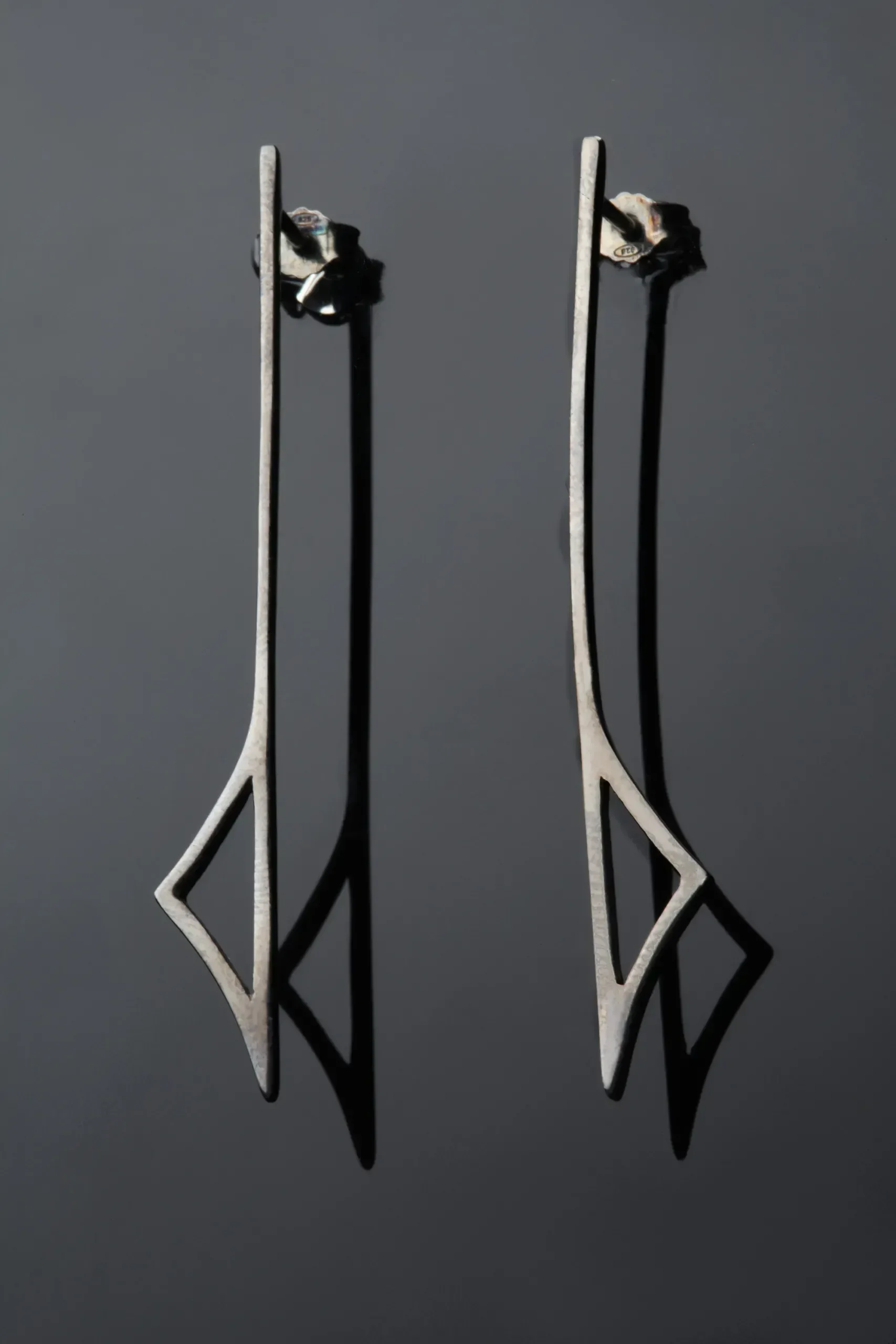 Μίνιμαλ γεωμετρικά ασημένια σκουλαρίκια με μαύρη επιπλατίνωση