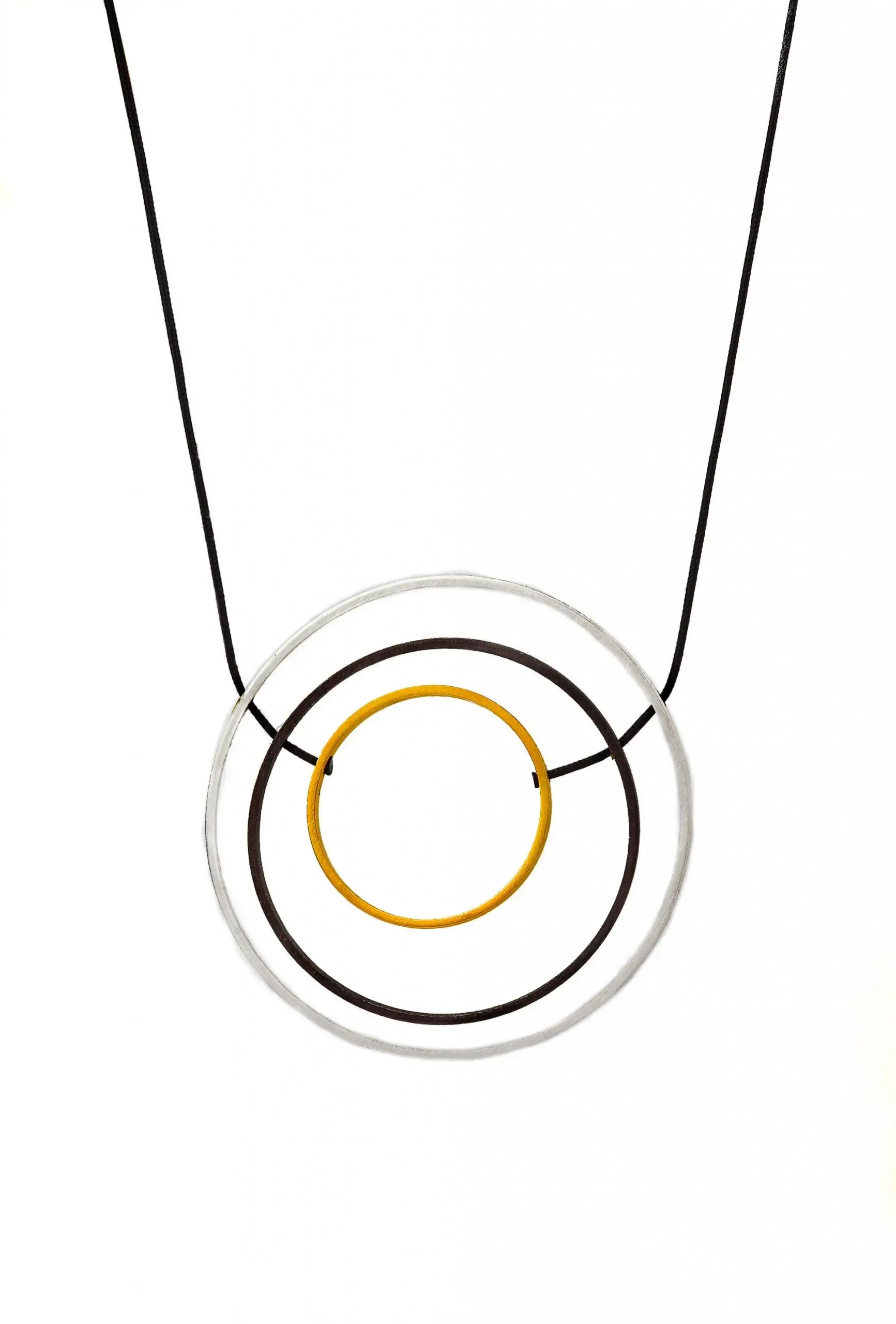 Μίνιμαλ γεωμετρικό κολιέ από ορείχαλκο με χρώματα επιμεταλλώσεων